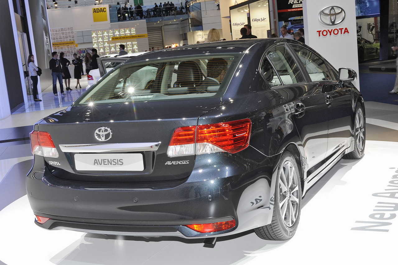 Toyota 2012 Avensis 接替 Camry 主打歐州市場,雖然車身尺寸和現行車型保持一致,但外觀方面則更加大膽,擁有最新家族式的鬼面罩,整個車頭形成「X」造型。大燈造型變得更銳利更硬朗,燈組內還增加了 LED 日間行車燈。內籠方面整體變化不大,利用深淺色製造層次感。動力方面,2012 Avensis 可選擇搭載 2.0 升四缸渦輪增壓柴油引擎、2.2 升四缸柴油引擎或者 1.8 升四缸汽油引擎,3 款引擎皆可採用 6 速手動變速波箱。