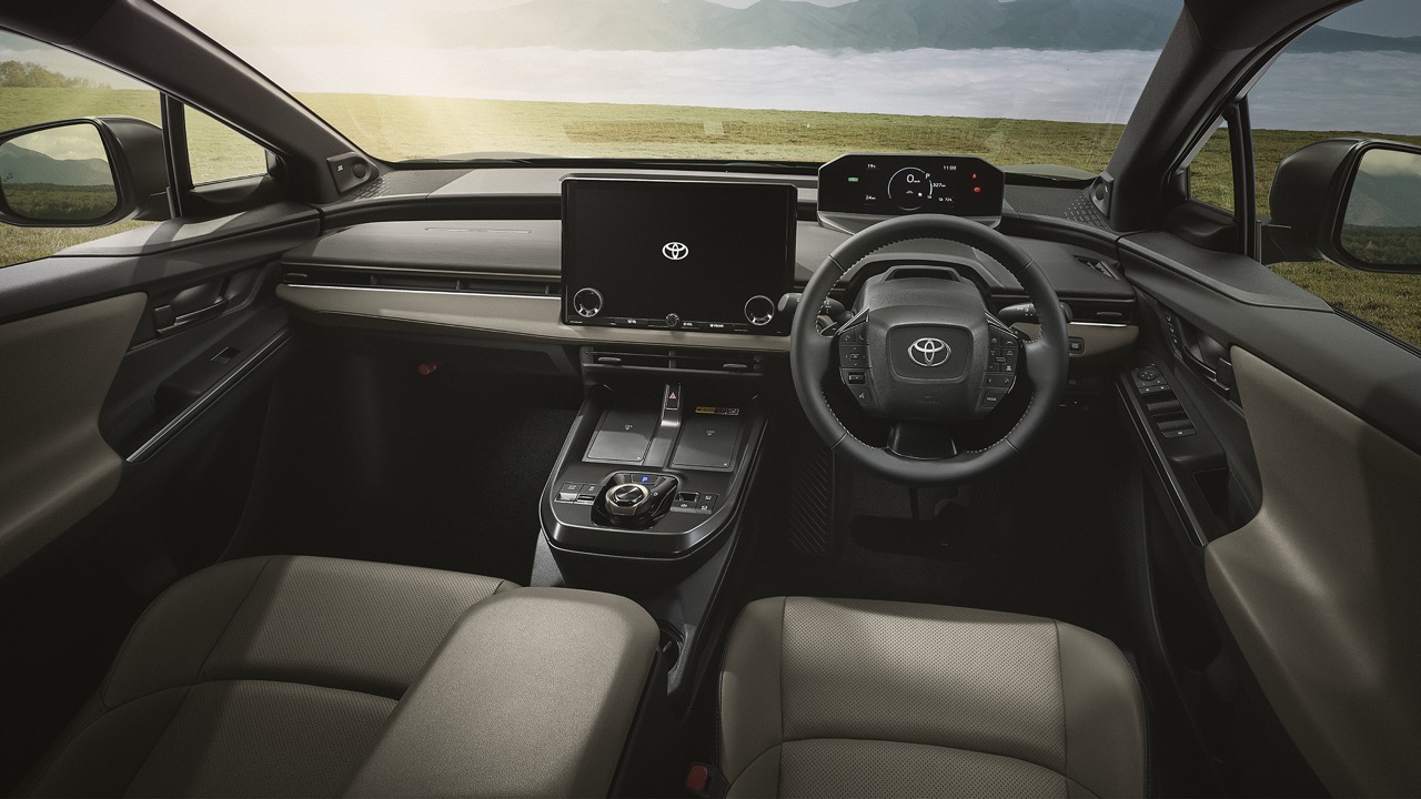 在空間佈局方面,bZ4X Touring 展現了旅行車應有的強大機能。車身長度達到 4,830mm,配合 2,850mm 的長軸距,營造出極為寬敞的車室空間。相比起標準版車型,Touring 版本的行李箱容量大幅提升了約 1.4 倍,達到 619 公升的驚人水準,足以橫向收納四個 9.5 吋高爾夫球袋。為了提升使用便利性,車廂內配備了多組掛鉤與遠隔操作槓桿,讓用家可以輕鬆在尾門位置一鍵摺疊後座座椅。此外,後座頭部空間維持在 113mm,前後座椅間距更達到 1,000mm,確保五人滿載時依然擁有旗艦級的乘坐舒適感。