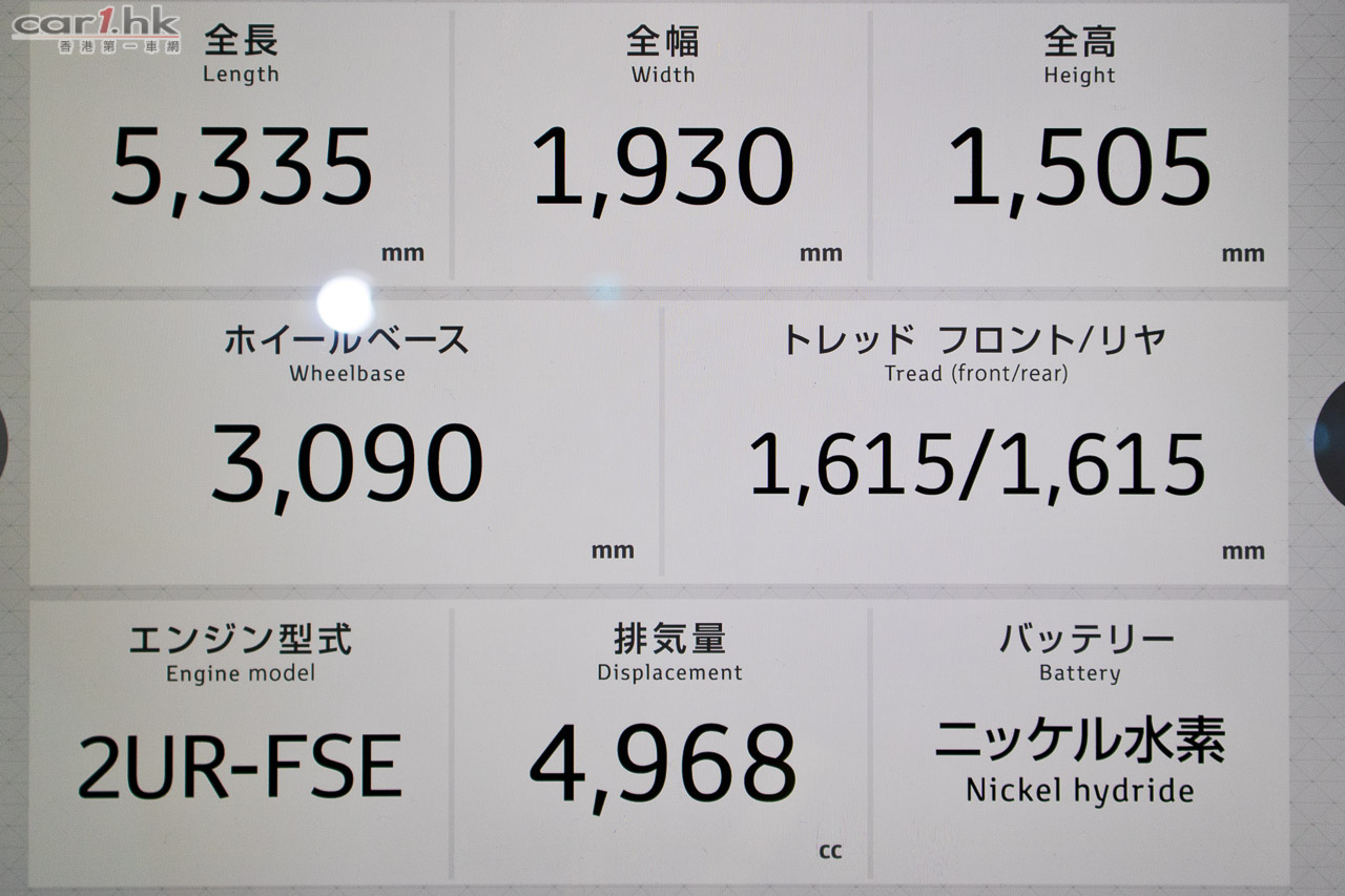 Toyota 一代豪華房車傑作 Century 在今年 2 月時宣布停產,不過並不代表這個系列終結,第三代 Century 終於在今年東京車展發布,明年中在會日本市場開賣。車頭的金鳳凰標誌依然存在,外型設計穩重、有條派。車尾簡單一個 Century 結尾,簡單而又富豪華感。車身軸長達 3,090mm,車體為 5,335 X 1,930 X 1,505mm,車廂中充滿日本傳統豪華車風格,沒有多餘的東西。全車座椅用上 100% 半絨包裹,座墊很厚,有按摩功能、也有辦公桌。動力系統方面,用上 5 公升 V8 自然吸氣引擎配 Hybrid 系統。