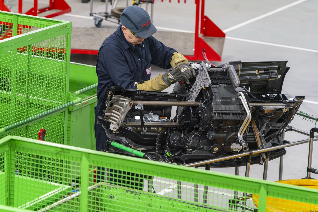 選址英國 Burnaston 並非偶然。英國作為歐洲最大的右舵車市場之一,車輛從出廠到報廢大多留在國內,形成了一個閉環的生態系統。這裡的技師利用豐富的混合動力製造經驗,將報廢車拆解程序標準化。從安全引爆安全氣囊、抽取廢液,到如同組裝新車般的「逆向拆解」,每一個動作都精準無誤。這些數據會即時回饋給日本研發總部,讓未來的豐田汽車在設計之初,就考慮到如何更容易維修、拆解與回收。