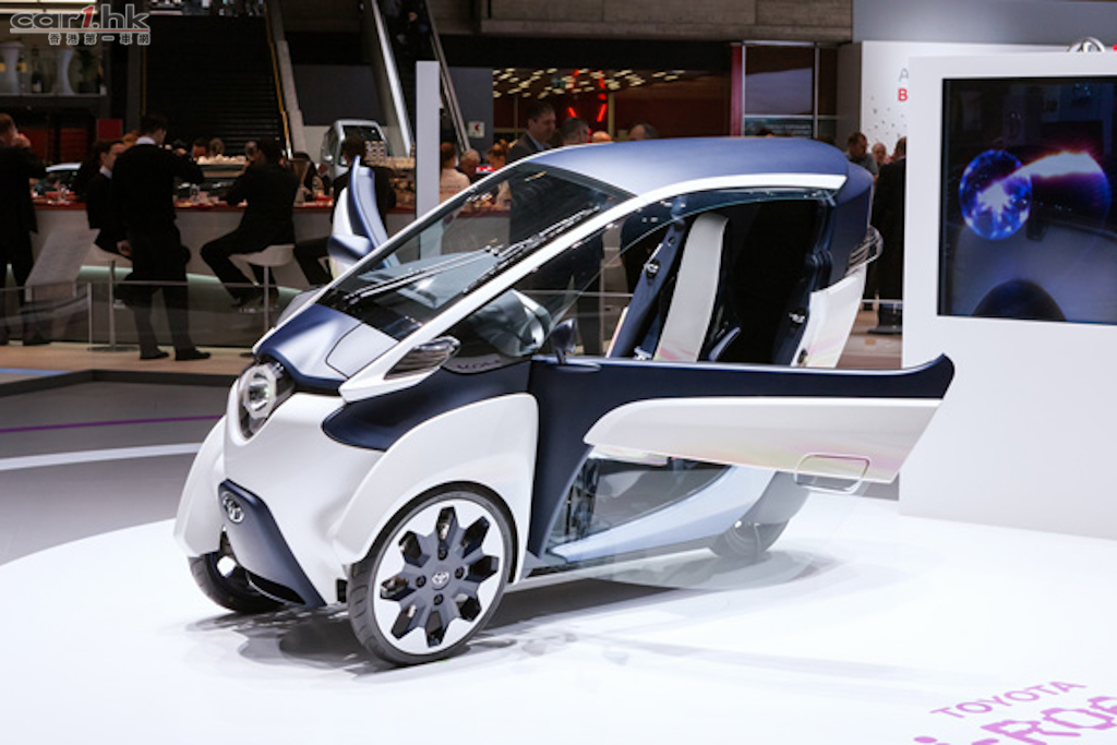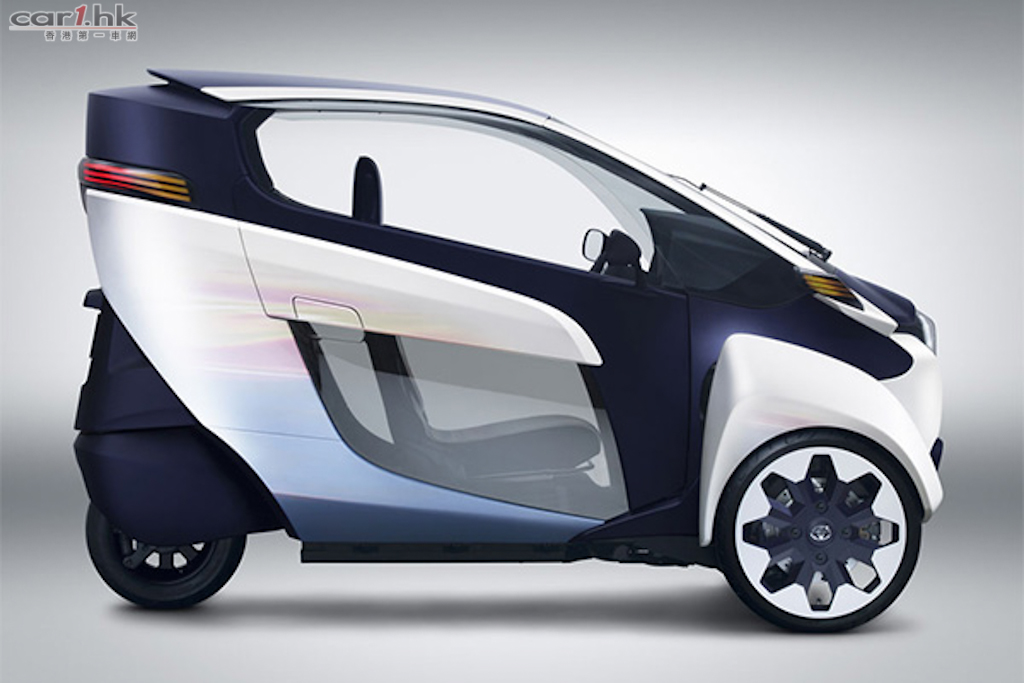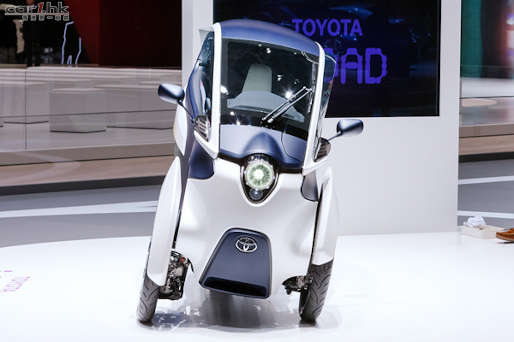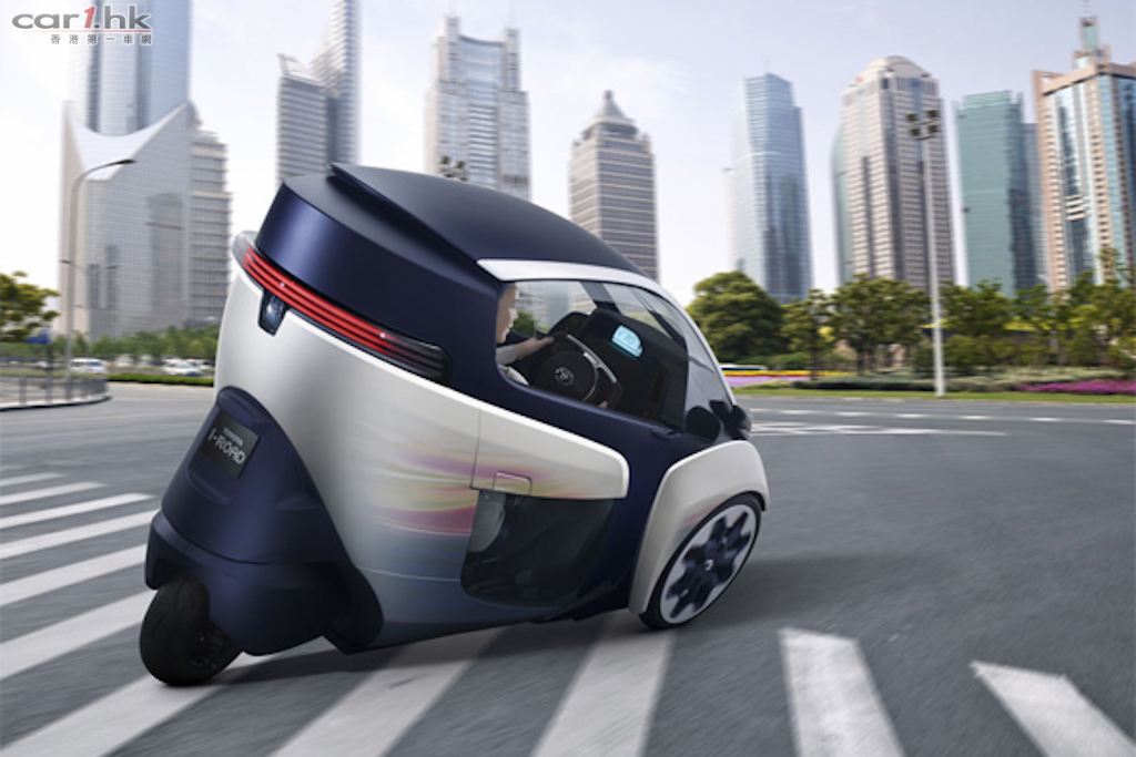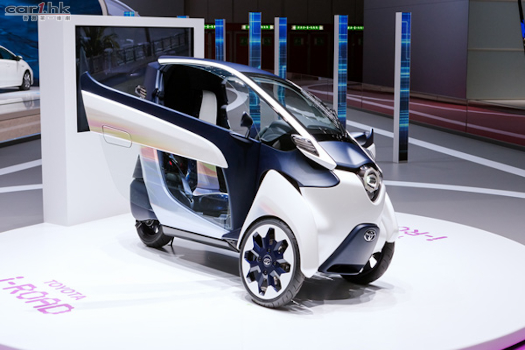 Toyota 在早前的日內瓦車展中發佈了全新城市概念電動車 i-Road,採用三輪的設計,以個人移動為目的,車身尺碼分別是 2,350mm(長)、850mm(寬)、1,445mm(高),最多可容納兩位乘客。i-Road 的三輪設計與其他三輪車有所分別,兩個輪在前方,一個在後方,這樣的好處是能像摩托車般傾斜行駛,並且因為 Active Lean 技術使行駛時擁有良好的穩定性和安全性。另外,封閉式的設計使 i-Road 比摩托車更舒適,而且可避免日曬兩淋,還設有照明系統、空調系統及音響系統等。i-Road 安裝於前輪的電動馬達輸出功率為 2 千瓦,最高時速為 45 公里,充電後可持續行駛距離為 50 公里,充滿電時間需 3 小時。