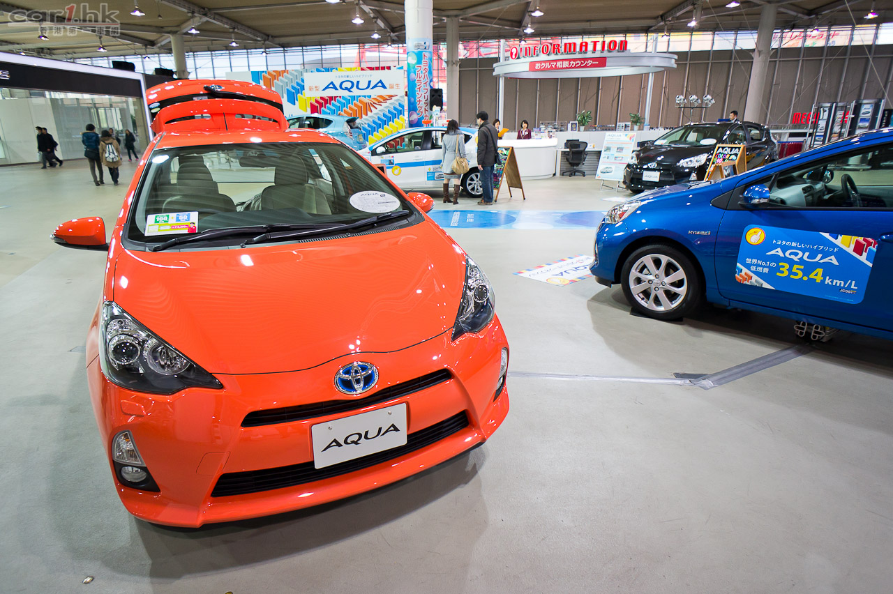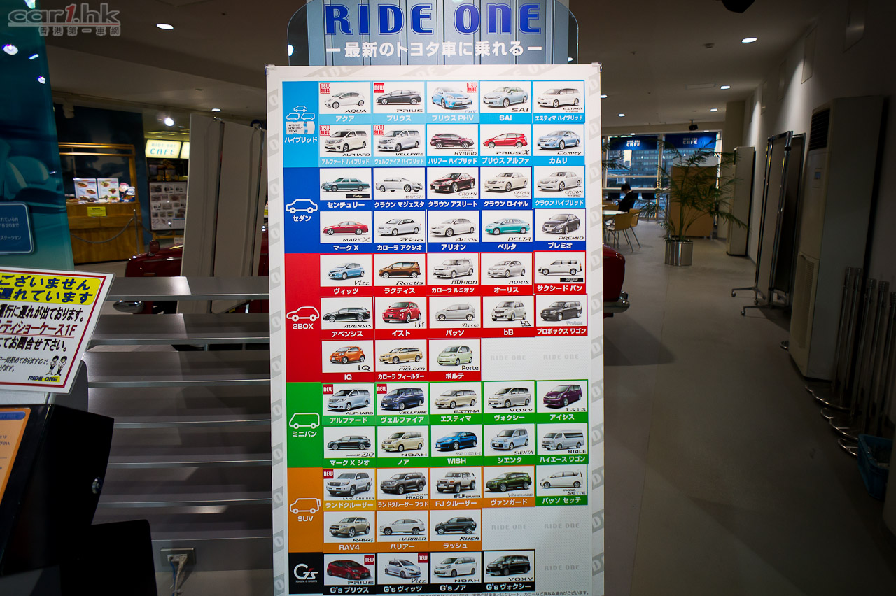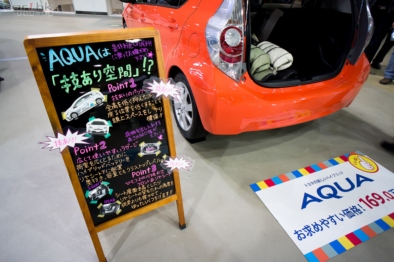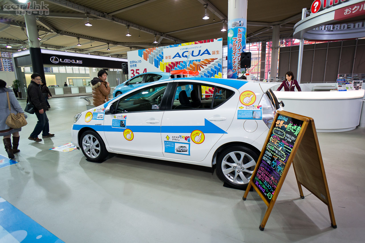 剛好拍攝時 Toyota AUQA(即香港 Prius C)剛推出市場,整個二樓新車區域幾乎被這架小車完全霸佔。雖然是拍攝當天是平日,但是到處都是對這架有興趣的車迷上車試坐。