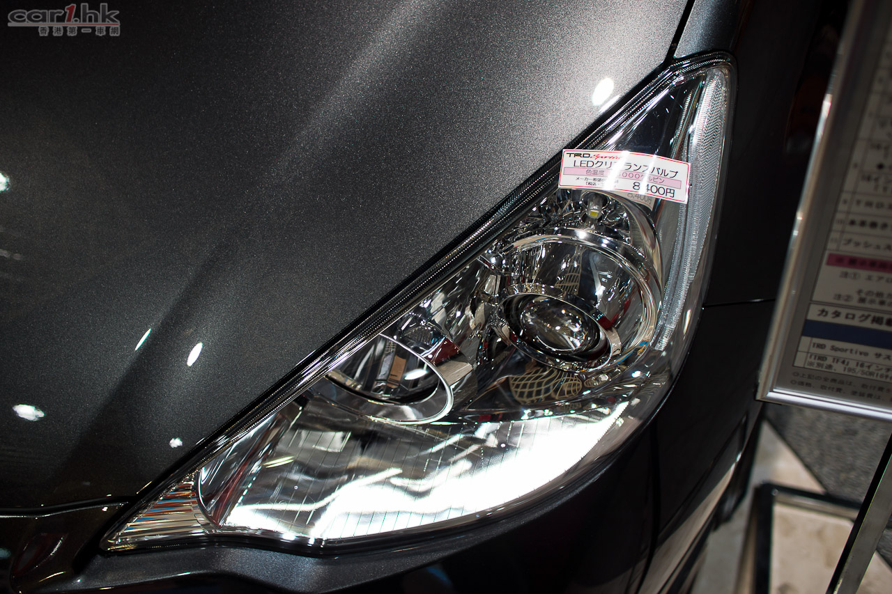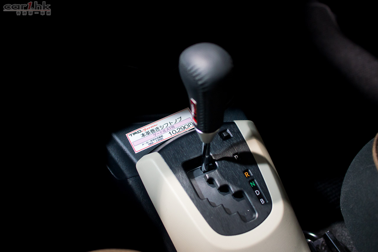 (左)泵把中央貼有 TRD 金屬牌,製作很認真。(右)魚眼 LED 車頭燈,令這架 Prius C TRD 看起來更醒神。