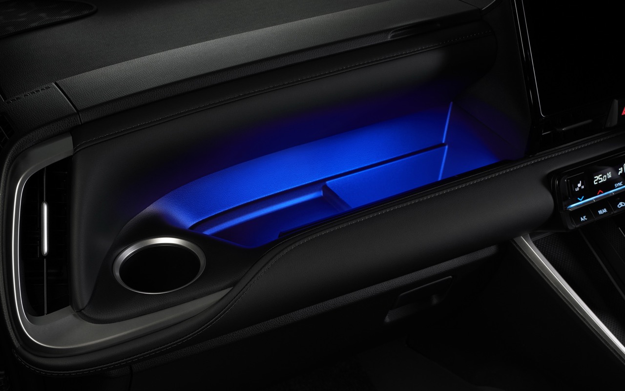 至於內裝部分,Modellista 則帶來了科技感十足的「多色室內氣氛燈」(Multi-color Interior Illumination)。這套組件特別針對助手席前方的小型置物空間進行設計。車主只需要透過靜電觸控板,就能以直覺化的點按或滑動方式,隨意切換不同的燈光顏色及調節亮度。無論是在深夜長途巡航,還是靜止停泊時,這道柔和的光影都能為原本平實的家用车廂營造出一份專屬的豪華儀式感。