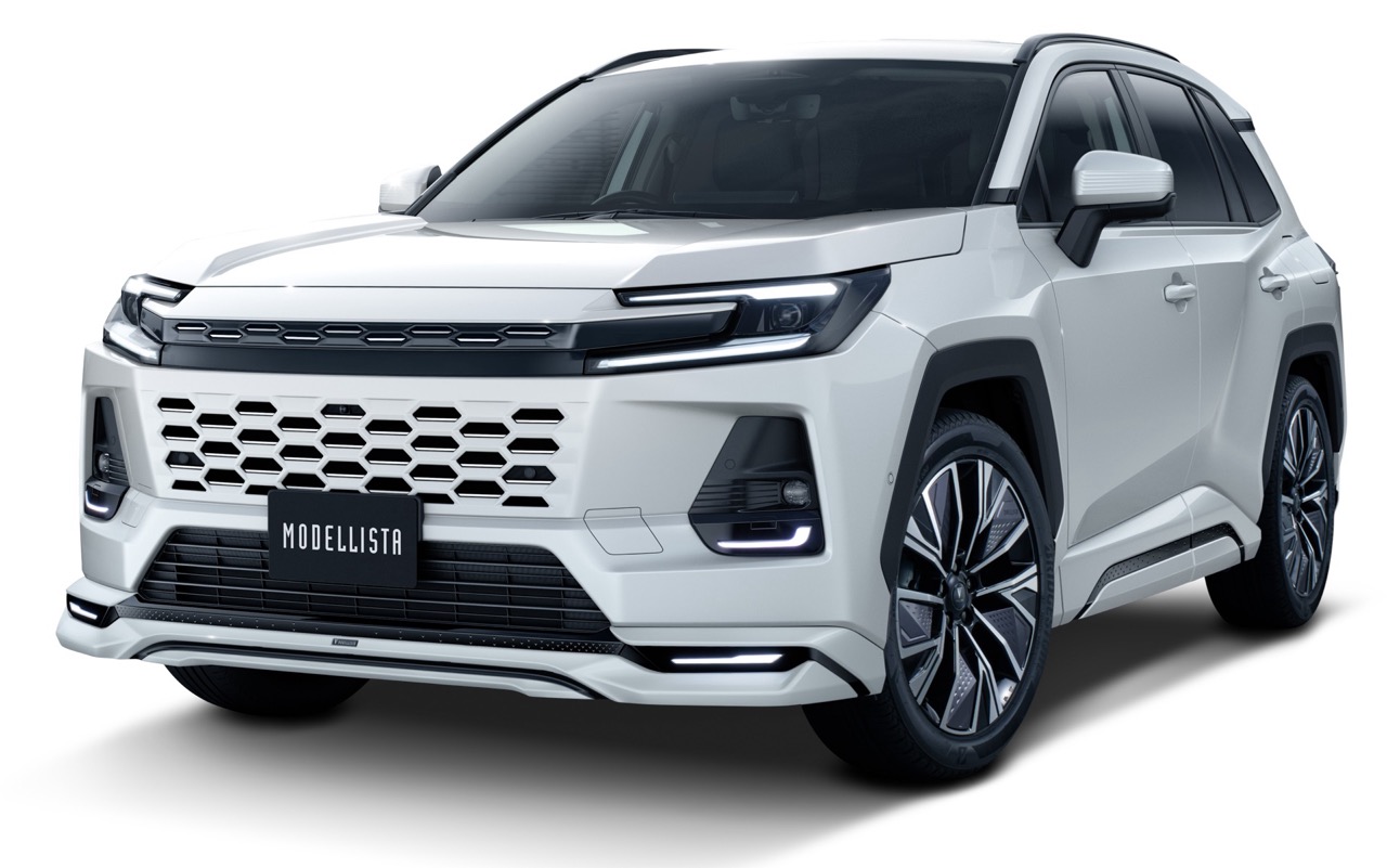 針對都會風格的 Z Grade 車型,Modellista 以 Urban Emotional Solid 作為設計靈感,將 Toyota RAV4 的都會時尚感推向極致。前擾流板兩側鑲嵌了銳利的 LED 導光條,配合向中心延伸的立體翼狀設計,營造出低重心且更具侵略性的視覺壓迫感。車側則透過加厚設計的側裙配合黑色飾條,將車身線條視覺下壓,打造出如豪華房車般的優雅躍動感。最令人矚目的是其 20 吋大型切削鋁圈,特殊的幾何刻痕配合灰色塗裝,讓 RAV4 在街道穿梭時展現出無與倫比的都市貴氣。