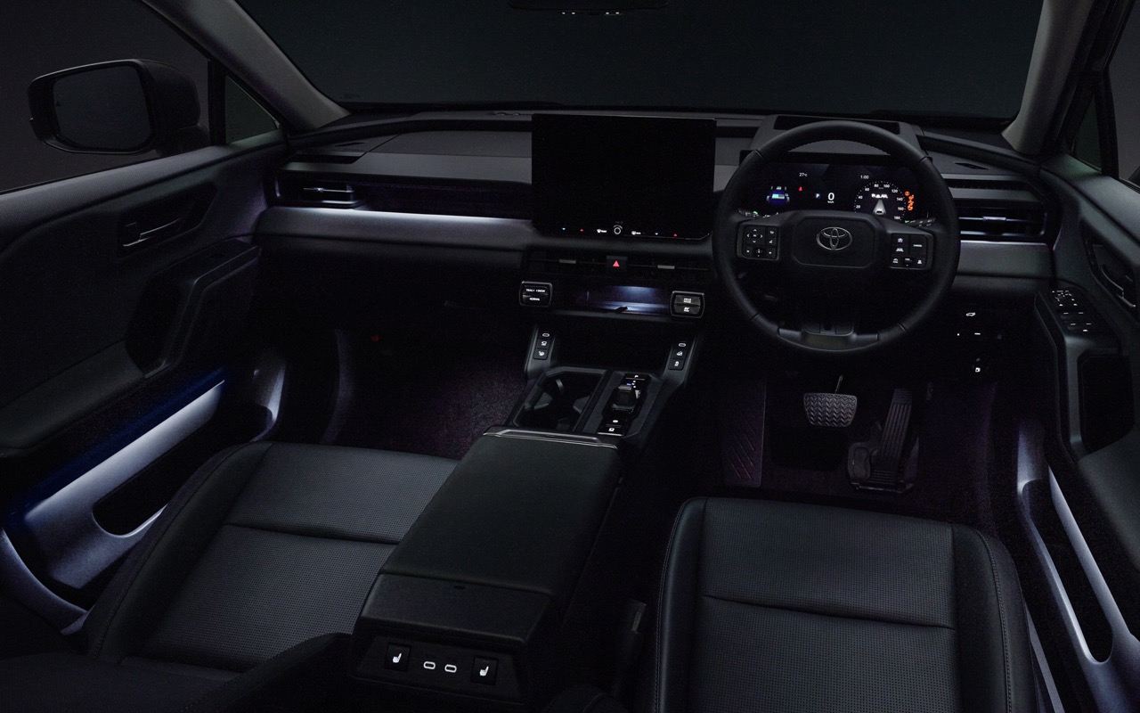 車廂內部的改造同樣令人驚艷。Modellista 深知車主對車室氛圍的追求,特別推出了全套內裝照明套件。這套名為 Ambient Illumination Package 的組合,涵蓋了與車內小燈連動的白色間接照明,並延伸至門板與腳部空間。當打開車門的一瞬間,印有 Modellista 字樣的發光門檻踏板隨即亮起,配合細膩的 LED 照明設計,不僅提升了夜間上下車的安全性,更讓原本純樸的 Toyota RAV4 車廂瞬間提升至頂級車款的精緻質感,呈現出如精品旅館般的奢華氛圍。