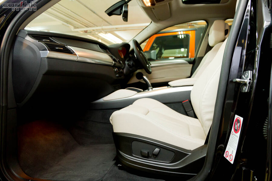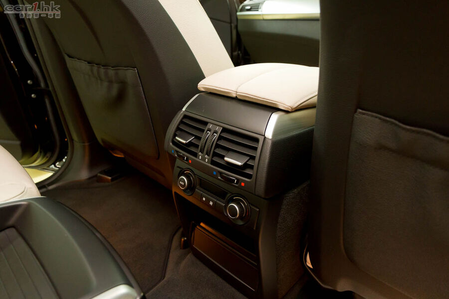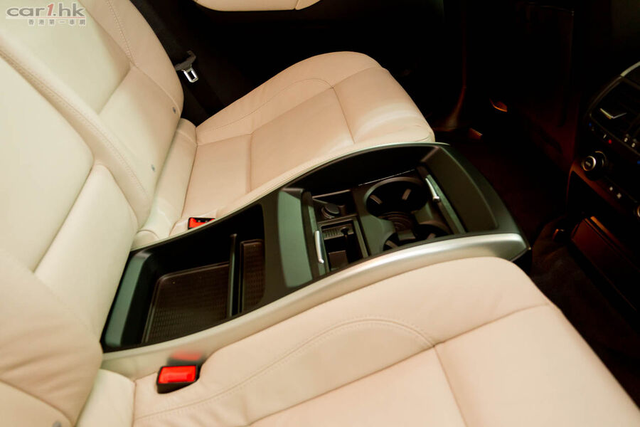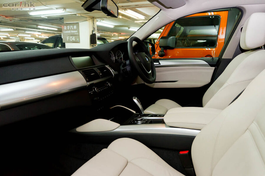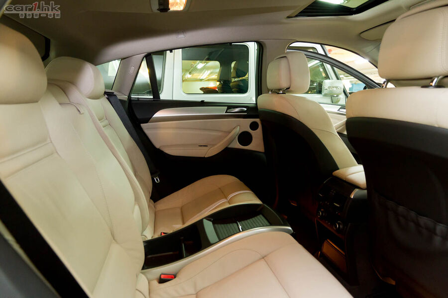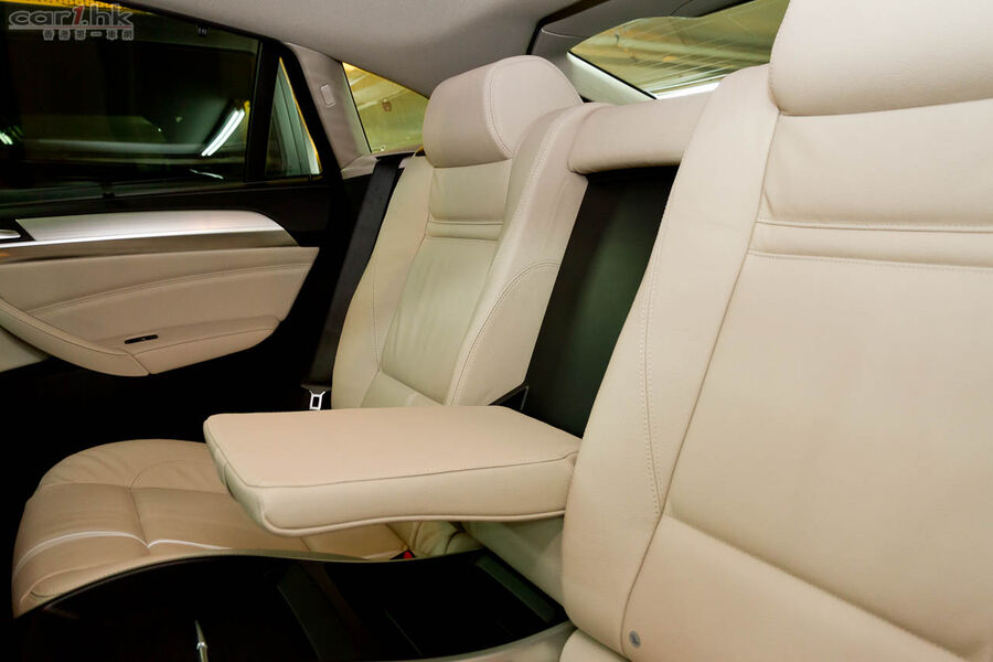 與同門 X5 相同底盤的 X6,體積和車內空間都與大哥 X5 差不多,兩車都有相同的 2,933mm 軸距,車內空間都是一樣的闊綽。前後排四個座位的舒適度都非常高,有足夠的腳部伸展空間,不過尾部設計接近房車,所以頭部空間就略嫌比 X5 緊湊,但不至於令乘客的頭與車頂有親密接觸。全車內籠都用上米色真皮,令車內格調變得更加豪華。後排中間有大型拉下式手枕加上儲物格和杯架,非常方便。