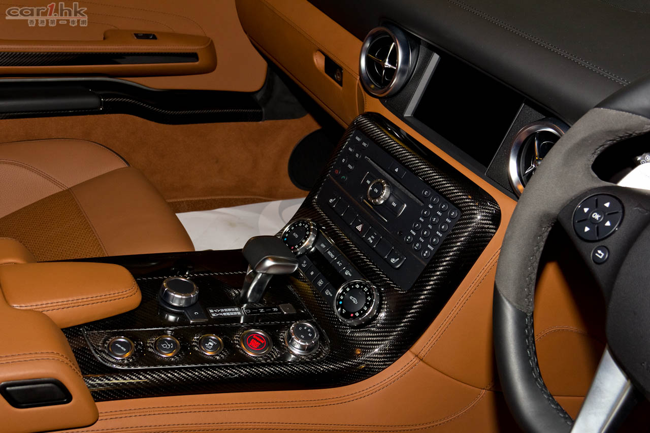 眼利的讀者會發現 SLS AMG 車門並沒有把手,又如何展歐翼的姿態呢?其實當按下車匙掣,把手便會自動伸出,關門時就會隱藏起來,這點小細節盡顯 SLS AMG 的高科技之處。其他設備還包括 Bi-Xenon 頭燈連 LED 日間輔助照明、電動跑車椅、Engine Start/Stop 引擎按鍵、自動恆溫冷氣及衛星導航系統等。