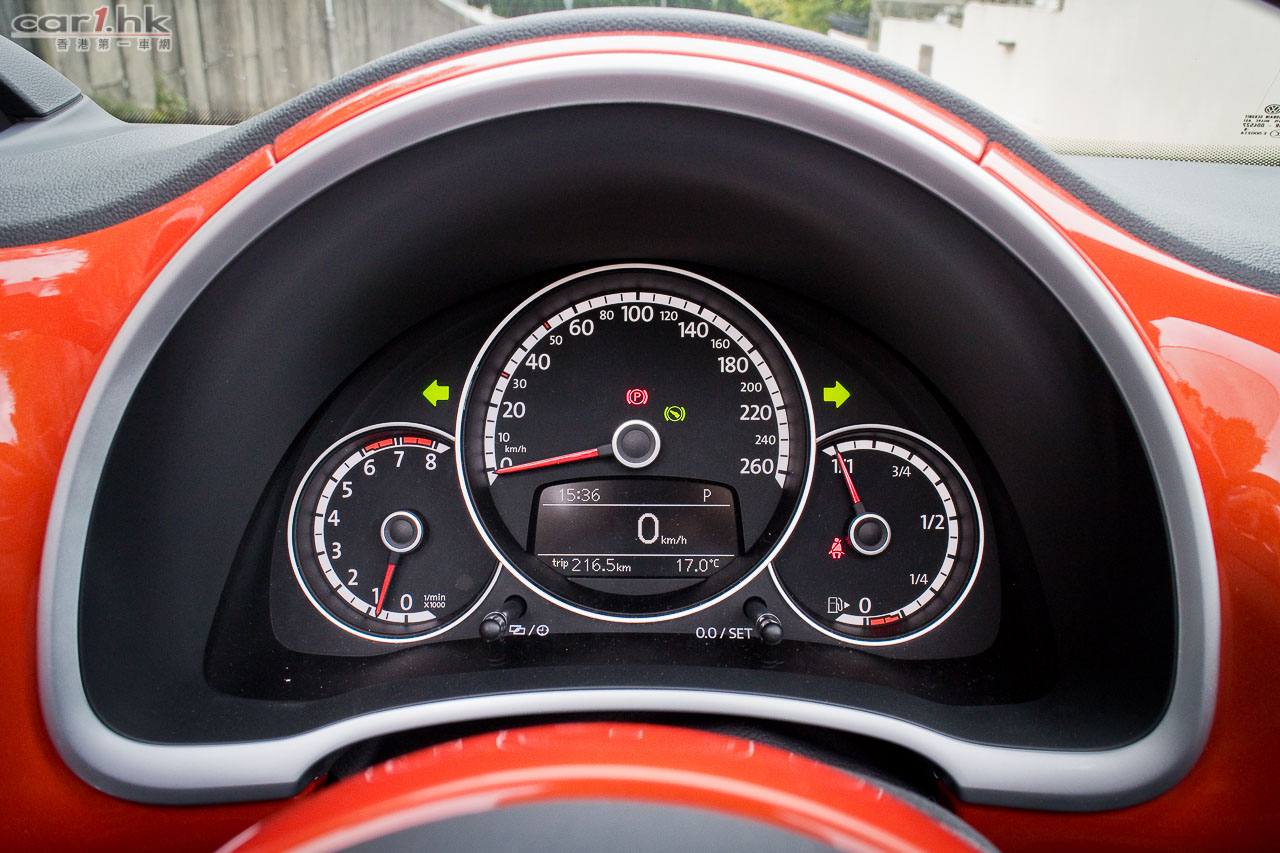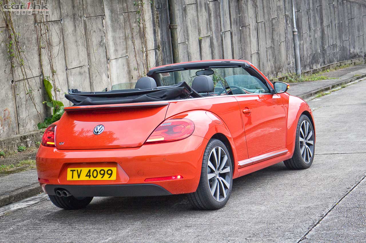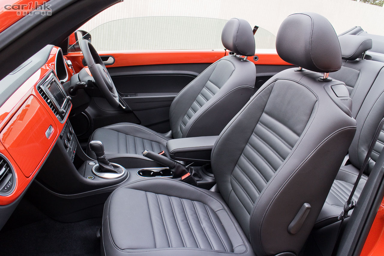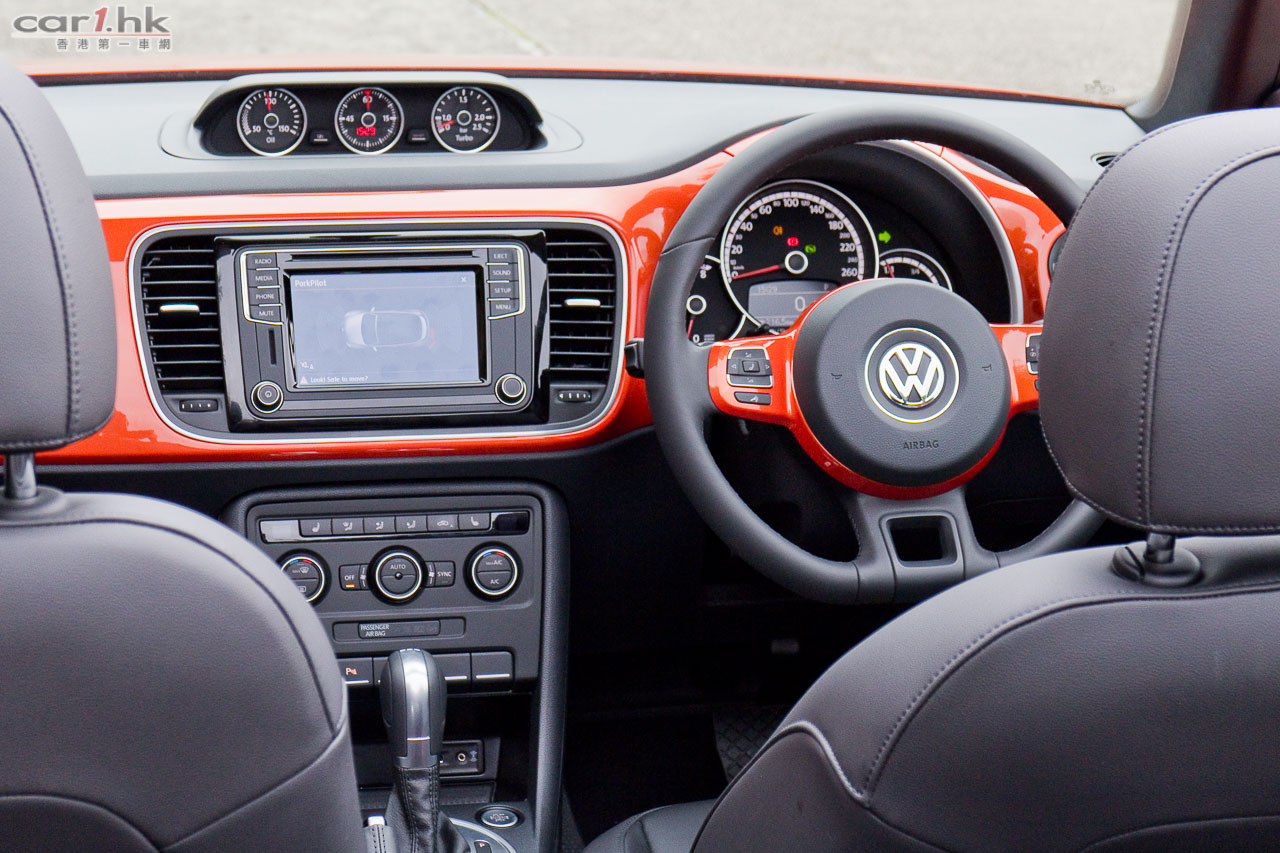 駕駛艙用料未有因為是小車而減料,同樣高級。軚盤是三幅式多功能版本,設有轉檔撥片,軚盤上的飾件亦是跟車身顏色匹配。中控台上是一部多功能輕觸式音響系統,新車系統在收音機功能上多一點圖像化,使用起來是方便一點。中控台上的小型三圈小儀錶,仍是主要設備之一,功能包括 Turbo 錶、油溫錶、G-Force 錶。車尾雖然未有後泊鏡頭,但車身前後都有泊車感距離應器,加上是小車後泊鏡頭功用其實不大,全車前後泊車感應系統比起其他日系小車只有後泊鏡頭,有時來得更實用。Beetle Cabriolet 1.4 TSI 使用了 160 匹的 1.4 TSI Turbocharger 引擎,扭力為 240 牛頓米,在 1,500-4,500 轉時已可爆發出動力,其起步感輕快,在 DSG 雙離合器波箱配合下,轉檔反應順暢度,令起步和加速感一點都不沉重。0-100km/h 為 8.6 秒,油耗每 100km 需要 6.4 升。