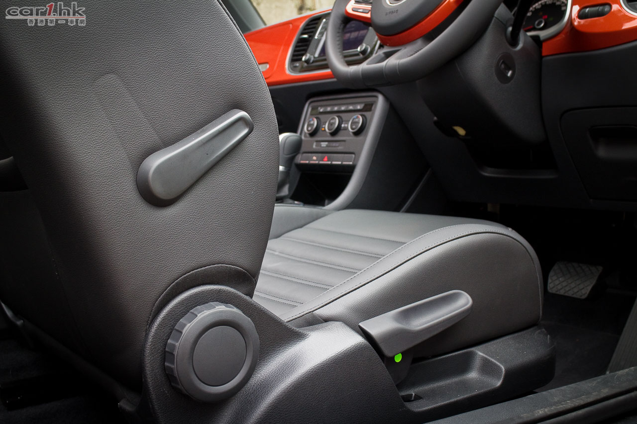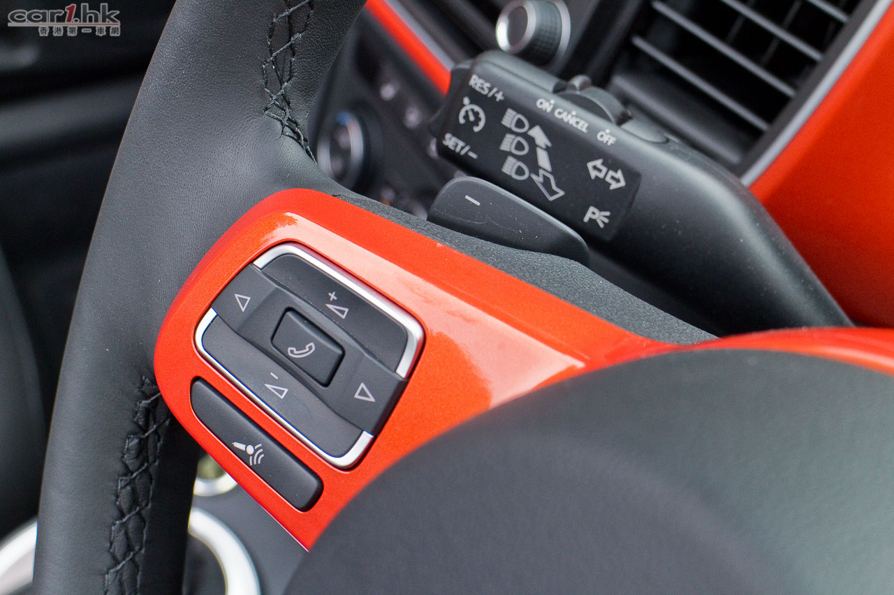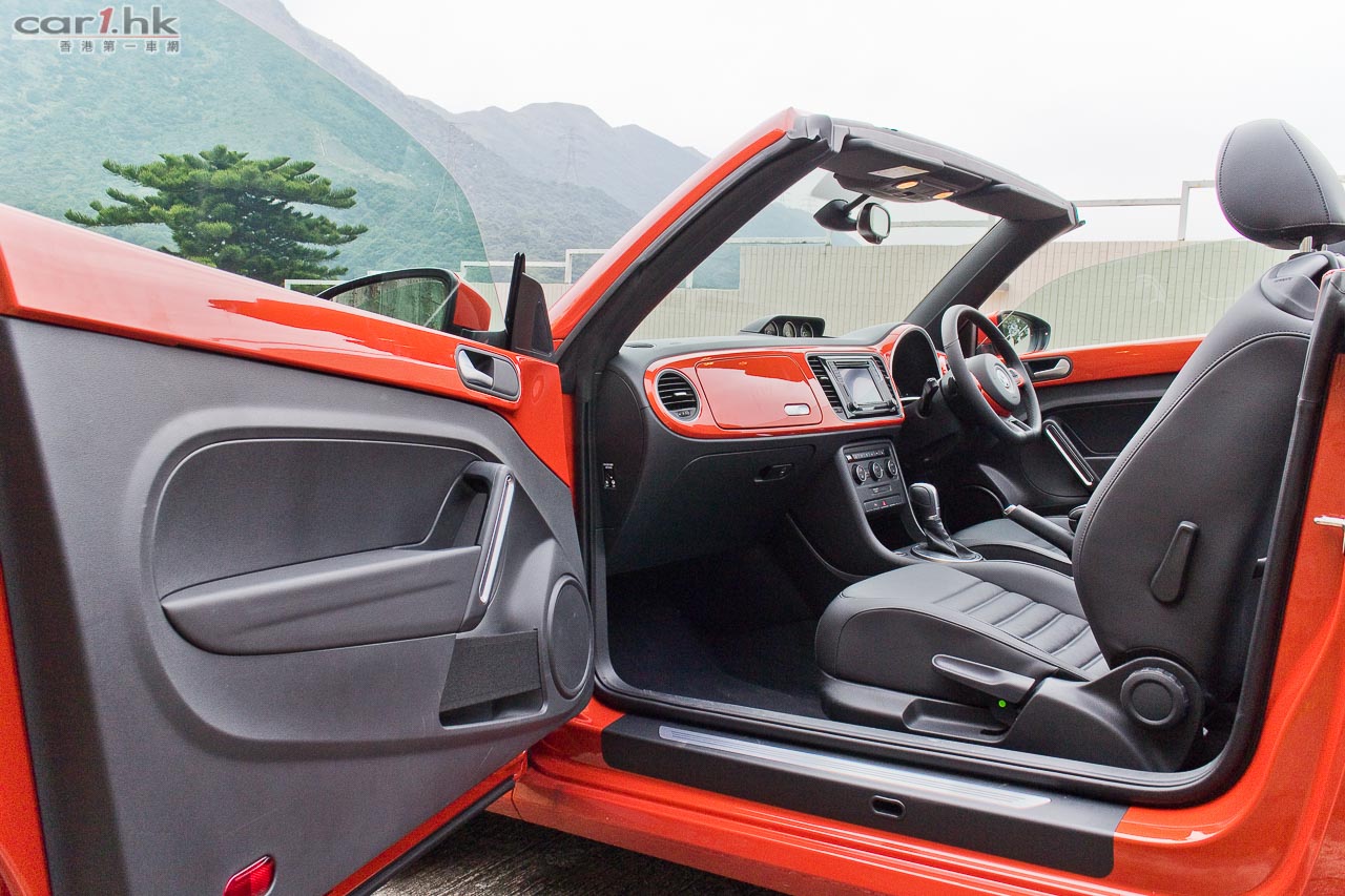 今次試駕的 Volkswagen Beetle 已經不是什麼新車款,但是它可說是長青產品,2016 年試的 Beetle 開篷版,廠方換了更大的 19 吋輪圈和極度受人討好的鮮橙色車身,令這部小甲蟲充滿活力。屬於小車級別的 Beetle,車外車內的配置其實都很出眾,車頭圓潤的車身配上圓型 LED 頭燈、車尾添加了尾翼,兩側再有裙邊包圍,令它看起來很可愛亦富運動感。入風口有長條電鍍飾件,兩邊亦有霧燈裝置。Beetle 內裝色調跟車身顏色作出了配襯,因此試駕車內都是鮮橙色為主,十分奪目。Cabriolet 開篷時間只需 9.5 秒,關篷只需 11 秒,操作算非常之快,由於軟篷只需向後翻開就可完全程序,操作相對簡單。在行車不高於 50km/h 情況下,軟篷可作開合操作,可適應當時天氣環境所需。