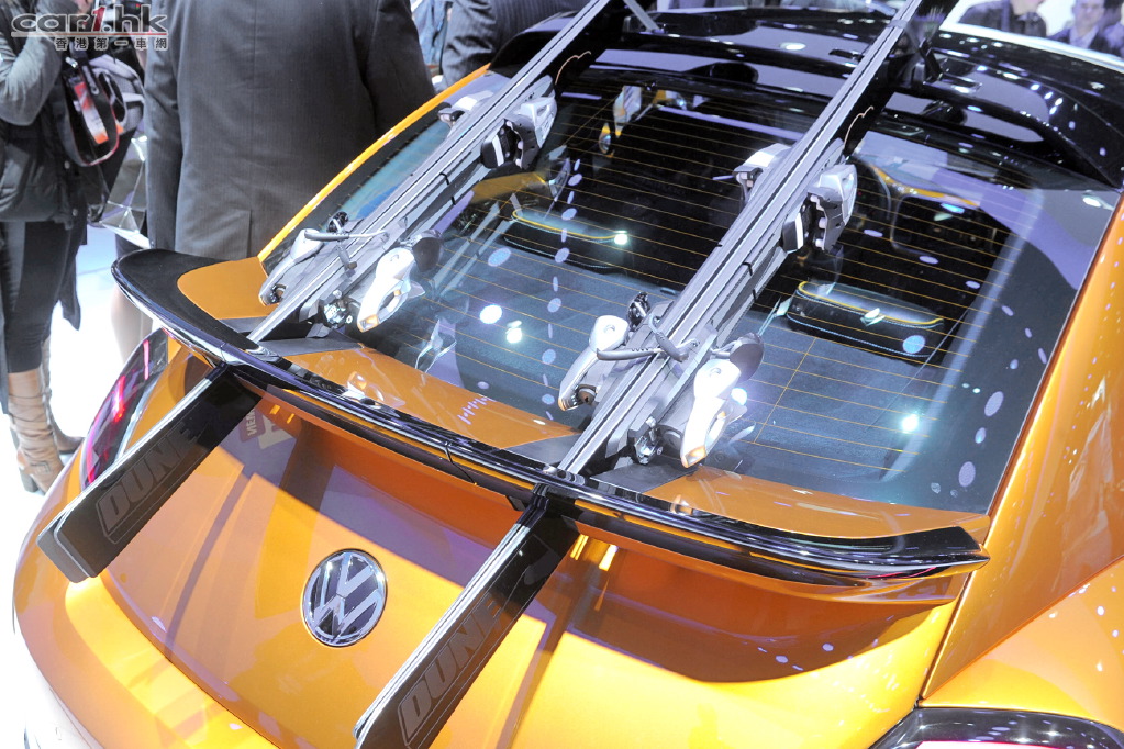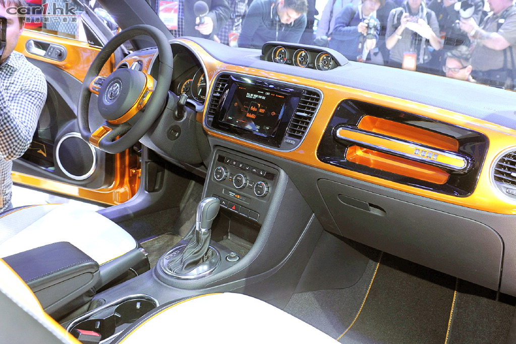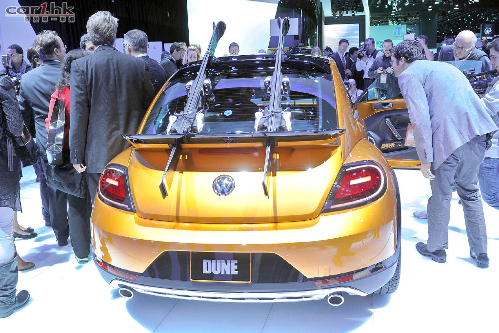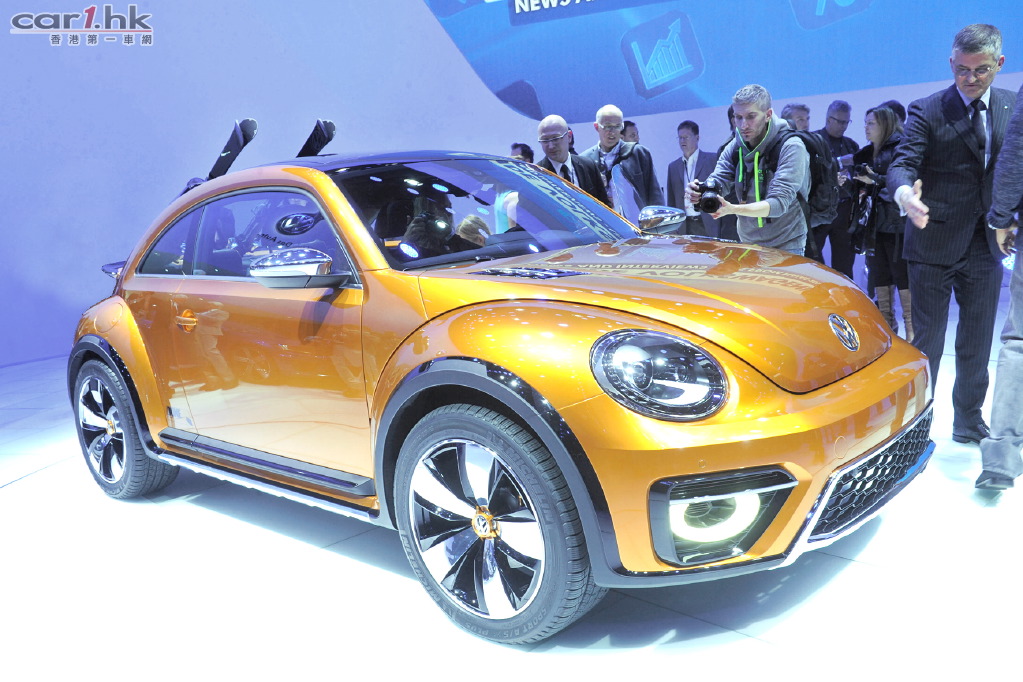 Volkswagen Beetle Dune Concept 舊料翻炒?想不到今年底特律車展上 Volkswagen 再次以 Beetle Dune Concept 展出新車概念,今次這部車加入越野與運動風格,加上黃色車身很易引人注目。叫得 Dune Concept,官方照片也將它以沙漠作背景,當然是想說給大家聽它的越野性。這款 Beetle Dune Concept 外型與現在款式相近,不過在泵把、裙邊、輪圈都進行強化和加大,以突出它的越野性。車廂內裝以黃黑雙色配襯,整體佈局未有大轉變。動力心臟方面,使用了 2.0 TSI 四氣缸引擎,配 6 速 DSG 波箱,擁有 210 匹馬力,由於仍在概念開發階段,最快也要 2015 年有機會量產。