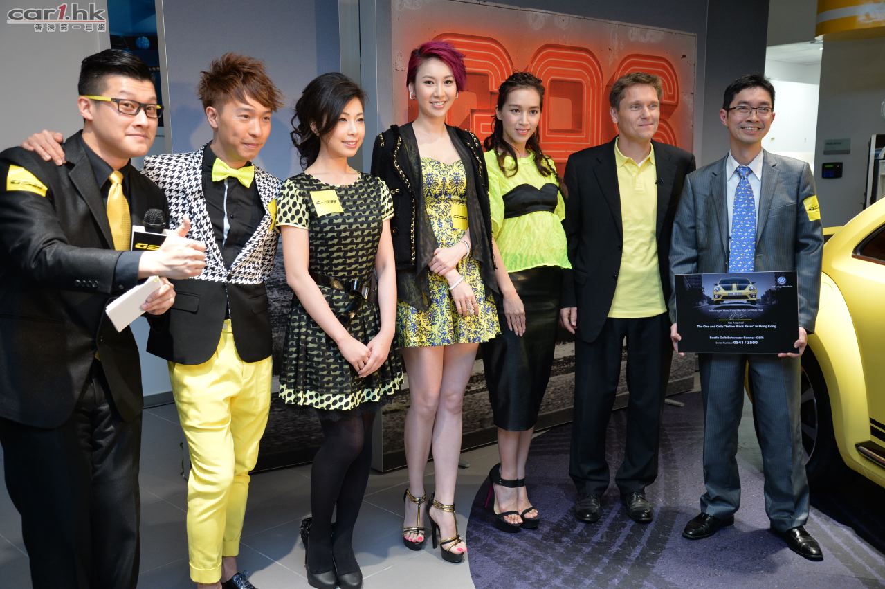 為增加氣氛,大會別出心裁地以黃黑色作主題佈置,與帶著運動血脈,富有澎湃動力的黃黑雙色 Beetle GSR 互相呼應,展現其不朽時尚個性;同場亦展示其他 Beetle 家族成員 Beetle Fender Edition、 Beetle 1.2 TSI 以 及 Beetle Cabriolet。大眾汽車集團香港有限公司及大眾汽車香港有限公司 董事總經理岳斯譚先生(Mr. Thorsten Jaede) 連同四位著名藝人歌手,包括莊思敏、傅嘉莉、黃紫盈以及吳彤,都以一身黃黑色配搭造型亮相,配襯出 Beetle GSR 運動性和充滿活力的氣質,為競逐 Beetle GSR 的 Beetle 擁躉們打氣。