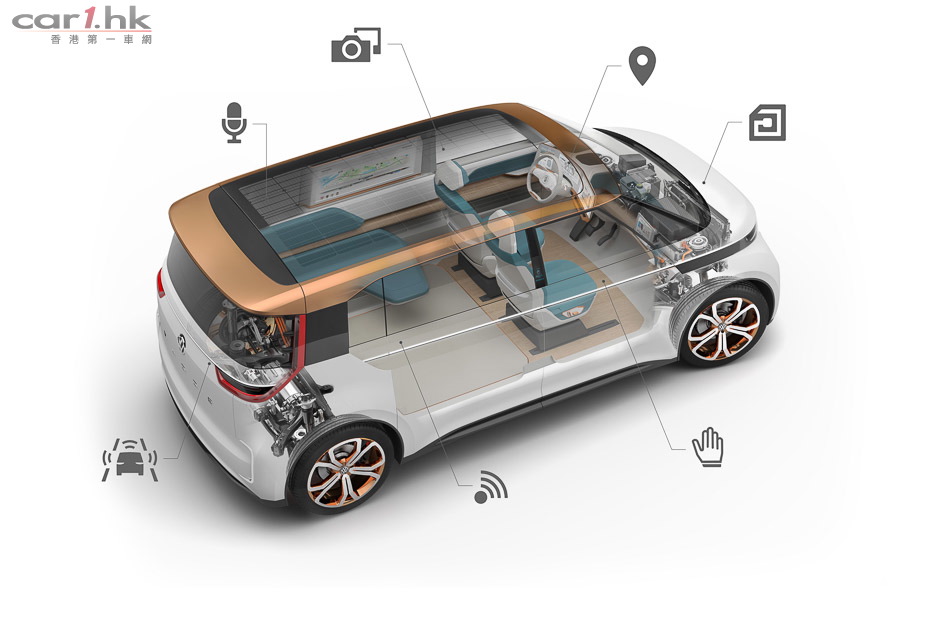 Volkswagen Budd-e 以電能作動力來源,最遠一次可走 600km,其充電速度很快,只需 15 分鐘就能完成 80% 充電,而且無線充電是同時支援,令充電時無需再接觸到線身總是不太乾淨的充電線吧。