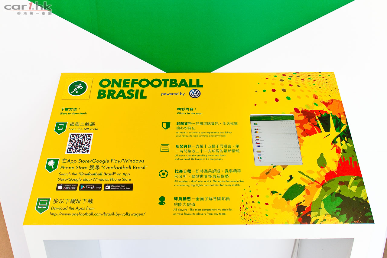 Volkswagen 推出了世界盃 2014 資訊手機 App,可以設定支持隊伍獲得最新球賽資訊,Volkswagen 也找來香港球評家留言報料,國外本地球評隨時掌握,只需使用這個 QR Code 連接即可免費下載。