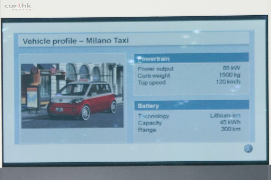 首次在港展出的Hong Kong Taxi電動概念車,採用零排放的動力系統及高能量密度的鋰電池,電池消耗量為每小時45 kW,為全球最有效節能的汽車之一。其車身體積輕巧,全長僅為3,730毫米,最高速度可達每小時120公里,馬力更高達85kW(約 115.6 匹),於完全充電後更可行駛高達 300公里。Hong Kong Taxi擁有快速充電的特性,只需充電 1 小時,電量即高達 80%。