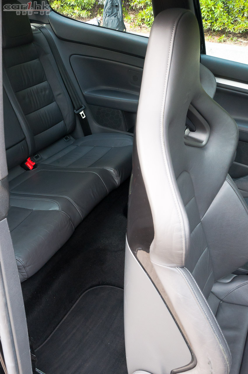 散發濃厚賽車味道的落場版桶椅,在直路加速和入彎時能緊密包圍駕駛者,令全程保持穩定坐姿。而望著顯示 300km/h 的錶板更引人入勝,不自主地希望大力再大力踩油。不過由於採用落場版桶椅和單門的關係,所以進出後排座位的空間十分狹窄,如果是比較高大或行動不便人士,在上落後排時便可能會較困難。