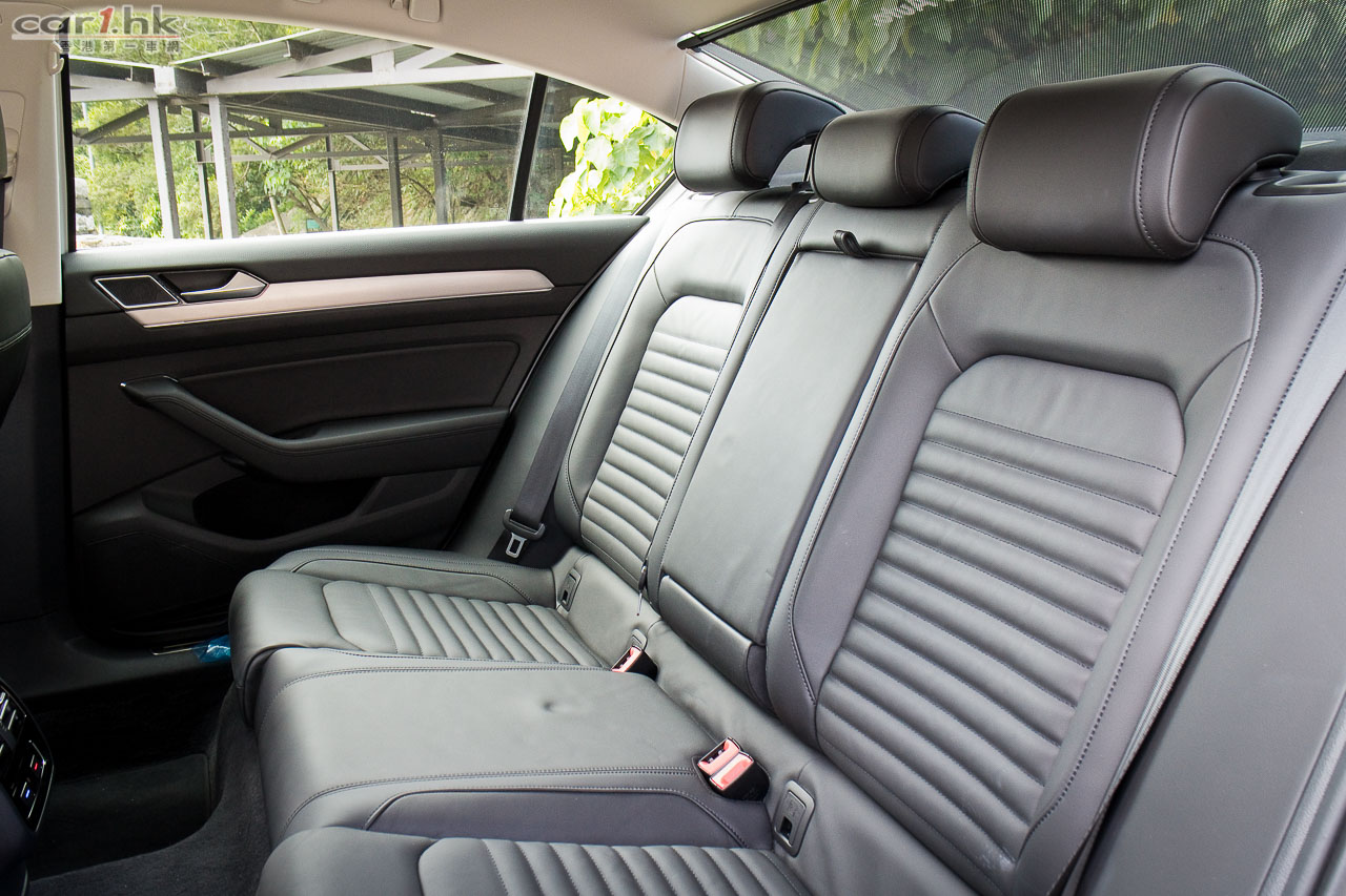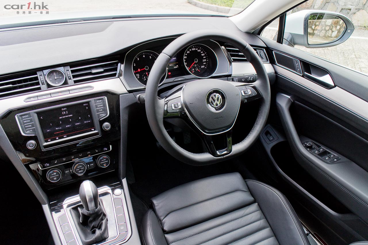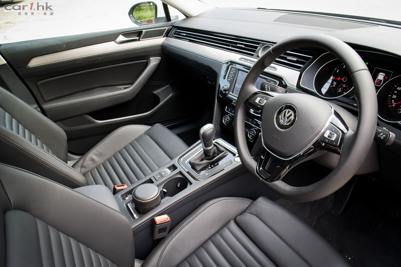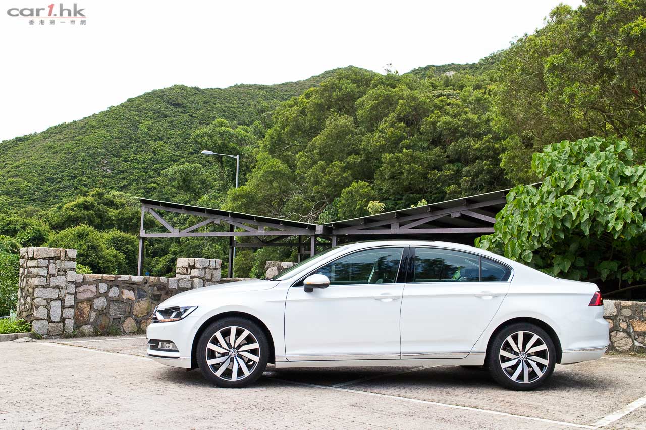 新一代 Volkswagen Passat 繼續以簡單、斯文的外型打造,在全新的 LED 頭燈(全新研發的全 LED 頭燈,採用反射技術,取代過往的Xenon照明系統)、尾燈(分為兩部分的煞車燈配備引人注目的燈光圖案)、三間電鍍鬼面罩配合下,已經輕鬆讓人分辨出新舊之別。新車車身低了、軸距長了,還用了更大的輛圈,添加了不少行政車應有的氣派。新車以 modular transverse matrix(MQB)底盤平打造,同時進行車身減磅,比上一代輕了 85 公斤,除了有助提升操控,亦對提升了慳油表現。今次試駕是 1,400cc 150 匹版本,同時廠方還有 1,800cc 180 匹版本供港。新車軸距增長了 79mm 後,令後座舒適性提升不少,尤其是在腳部空間部分,跟其他歐洲同級車難分高下。