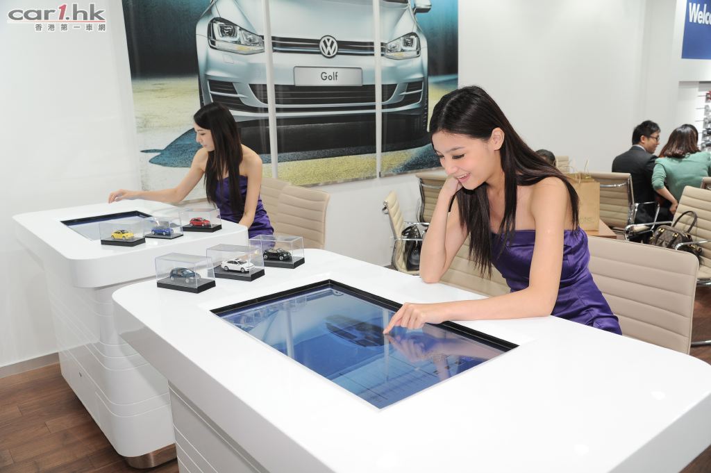 香港作為亞洲國際大都會,匯聚創意與科技,因此 Volkswagen 率先將高科技智能陳列室的創新概念引入香港。全新旗艦陳列室佔地達 11,000 平方 呎,可同時展出多達 14 輛汽車,且引入了五大創新數碼技術包括將動作感應科技應用在分別 110 吋及 92 吋的巨型屏幕牆(V-Motion)上,顧客不論是觀賞 Volkswagen 資訊影片或是挑選心儀車款,均能擁有智能互動體驗和震撼的視覺享受;超聲波感應平板電腦(V-Snap)具備定位及圖像偵測功能,透視汽車重點功能;智能感應投影牆(V-Tunnel)便會因應客人的位置展 示 Volkswagen 品牌故事的影片。兩張多觸式屏幕桌(V-Table)則供客人瀏覽各款新車規格及了解 Volkswagen Think Blue.環保理念。創新的互動櫥 窗(V-Window)更是全港首間陳列室獨家採用,運用「Touch Foil」技術將櫥窗變成了互動觸控屏幕,開創 24 小時全天候嶄新購物潮流。全新 Volkswagen 陳列室匯集高科技和環保概念,優化顧客的購車體驗,開創本港汽車行業先河,堪稱集團在亞太區陳列室的典範。
