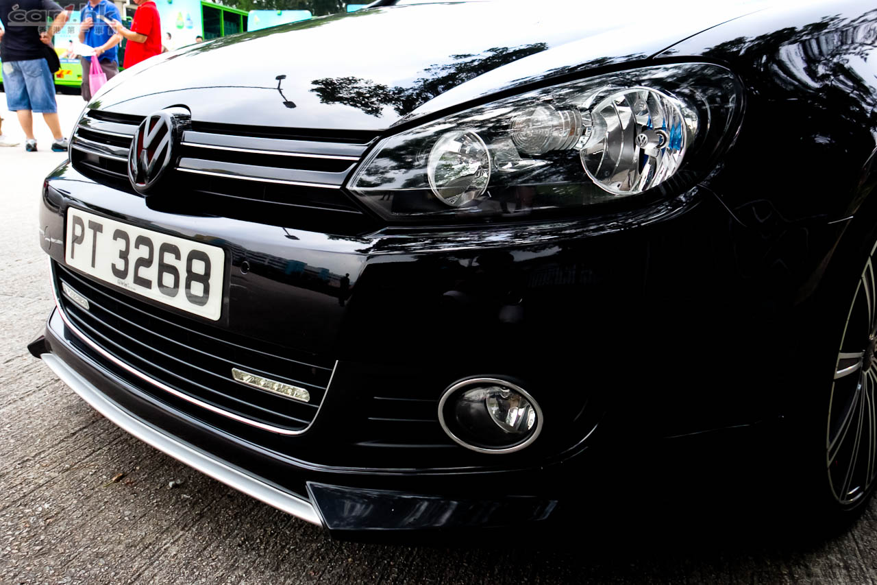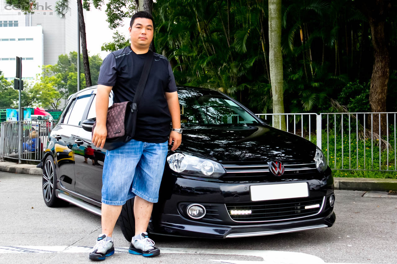 阿 Sun 在 2010 年 9 月買了這部 Golf GT 1.4 TSI,之前揸 Honda CF4(Accord),轉車的原因是因為油價日漸上升,所以想慳油一點,而且還需要少少力或改裝潛能,所以就選擇了買 Golf GT,油費方面以前大約 1 公里 HK$2,現在大約 HK$1.2,相差很遠。至於性能方面,Sun 就表示其實在香港用來代步,原廠設定的 160 匹已經夠用有餘,但要跑得快當然差少少。這輛 Golf GT 1.4 TSI 在性能方面就改了油門放大器、Low Bar、迫力、喉和風隔等,以及調校了一次電腦設定,現在大約有 210 匹馬力。改前改後除了在起步和加速方面有所提升外,最大分別是在彎位的表現,未改前在高速入彎時可能會咬地不足,如果過快更加可能會有一邊的輪軚咬不到地,而在現在過彎就很順很穩很平伏。