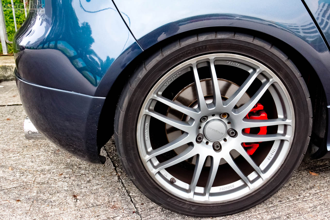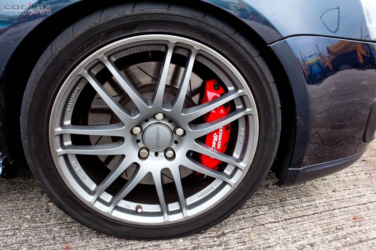 Peter 可謂識英雄,因為他是在 2005 年買了第五代第一批 Golf GTI,Golf 之所以出名亦是因為這一代的 GTI 做得好。之前揸 Benz C240 的 Peter 表示,換了車後最大的轉變是人開心了,雖然 C 仔是一部不錯的房車,但如果想追求速度感或比拼一下,基本上真的會「被人蝦」。而在換了 200 匹的 Golf GTI 後,由於車子調校得十分出色,如果想快只要在踩油時夠贍就得,給予駕駛者極大的信心。至於維修方面,Peter 表示比較麻煩的是燃油噴注的位置上有一顆金屬粒耐用性低,很容易磨蝕,但在 2006 後就推出了改良版,即使到現在改車後,用回原廠零件一樣沒有問題。在行了 Golf GTI 兩年後,Peter 便著手改裝,但他並不是一開始便調校電腦,而是先將所有的硬件改好,例如避震、迫力和輪軚等,因為會快但不會停一定死得,之後調了兩次電腦設定,第一次提升至 260 匹,第二次為 285 匹,雖然仍然有上升的空間,但附帶其他要改的東西亦很多,而且 285 匹已經覺得十分夠用。Peter 最後還指現時年輕人進行改裝,千萬不要一味只想「快」,懂得「停」才是大師傅。