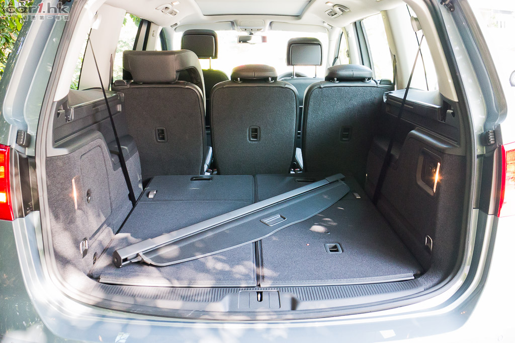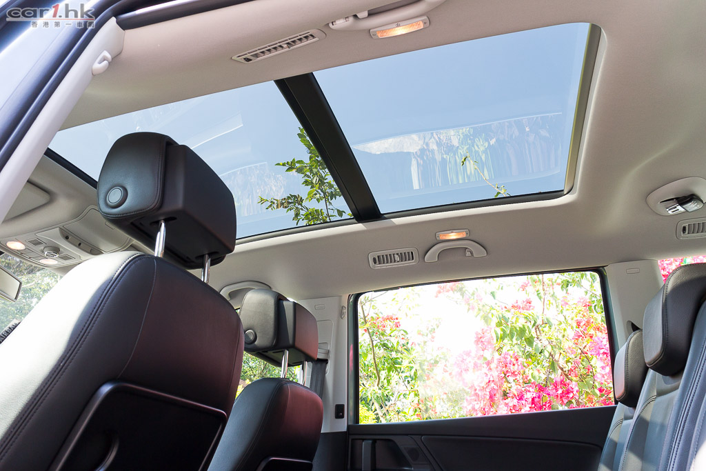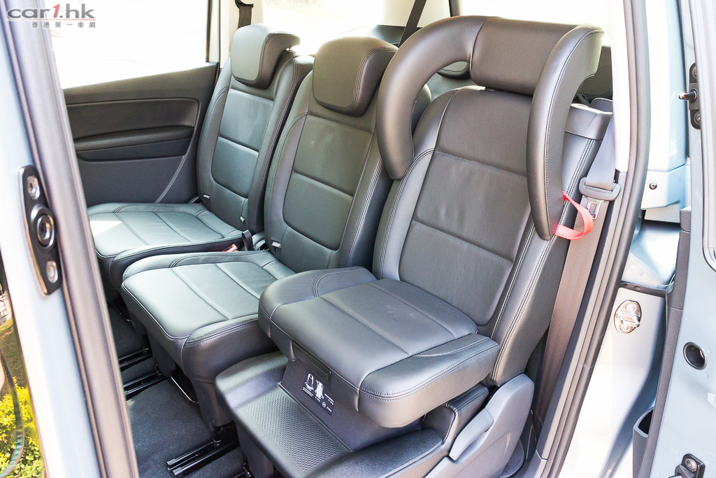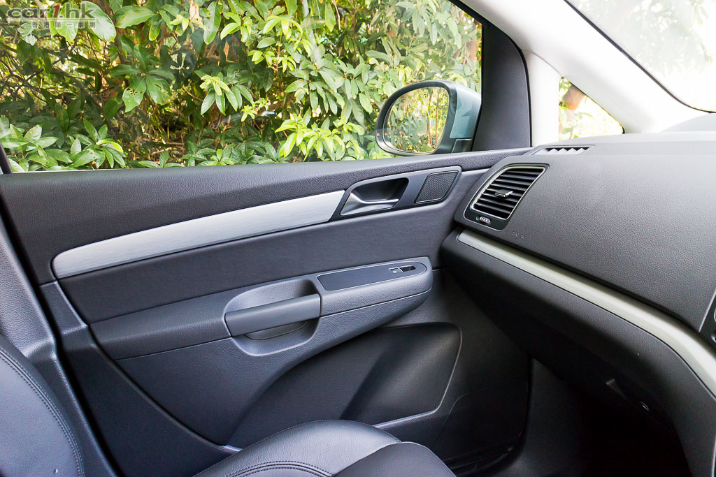 在近距離接觸 Sharan 時,覺得它外型不算太巨型,還覺得有一點細,怎料上到車後原來空間非常多,完全沒有壓迫感。前座兩張車椅為 12 方位電動調校角度,乘座感與其他 Volkswagen 車款沒有太大分別,都是舒適為主。中排為三張車椅,尾排兩張車椅,全車只提供 2+3+2 座位佈局。中排的邊位坐椅可以將椅背翻下,用作後排乘客上落,而這個出入口亦算寬闊。後排的空間感比預期好,不論是頭頂、腳部空間都是針對成人設計,全車坐七個成年人一定沒有問題。全車採用了三點式安全帶,安全性方面亦有所提升。中排坐椅還設有一張小朋友座椅,配合具有保護作用的頭枕,就可成為一張小朋友座椅,這個隱藏功能又實用又省下安放小朋友車椅的空間,一舉兩得。載物空間方面,一般七座情況下只有 300L 空間,不過將第三排座椅翻平後,便可提升至一般情況也用不完的 2,297L,我們亦可只翻下一張座椅,可因應載物載人需要而設計。這架 Sharan 與大多數 Volkswagen 車不同,它原本已配置無匙著車系統,可同時操控車門的開關。在車廂、載物、方便性,Sharan 不遜給日本品牌,它還多了一張小朋友座椅,值得加分。