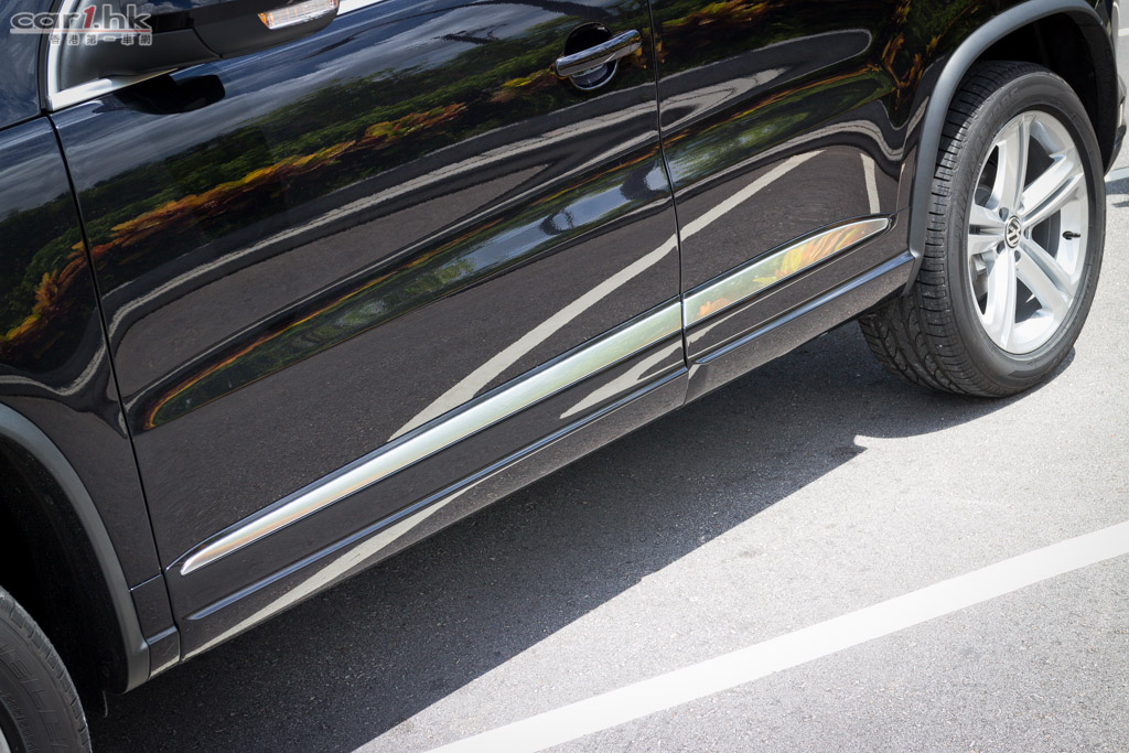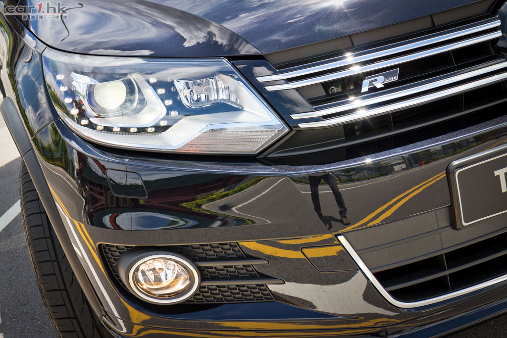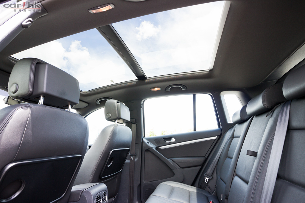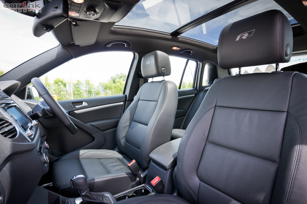 為了讓 Tiguan 更多變化,廠方為它推出 R-Line 版本。首先,車頭鬼面罩掛上 R-Line 車章,車門兩側加入大型電鍍飾件,令到車身線條更加明顯。輪圈也換上 18 吋合金鈴,令到 R-Line 版的 Tiguan 更加有旅行車的味道。車廂內,車椅換上 R 字樣的皮座椅,不過乘座舒適度跟過往是一樣的,亦沒有額外加強腰位的包圍感,仍然是舒服為主。中控台的觸控式音響,改用碳色閃粉飾件裝飾,觀感上來得年輕,與一般 Volkswagen 喜愛的啞色飾件,筆者比較喜歡 Tiguan R-Line 這個配置。大型天窗天幕是這款的頂級甜品,前部份屬於天窗可打開,後半部份是天幕,由前座伸展到後座,試駕當日天氣非常晴朗,完全感受到這個天窗頂帶來的震撼力。