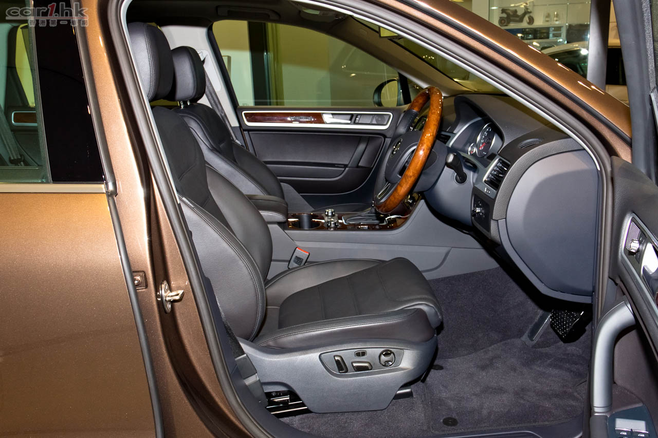Volkswagen 全新 Touareg BMT 日前已經正式運抵本港,並成功獲得環保私家車稅務優惠,售價為 HK$658,800。沿用 3.6 公升 V6 FSI 引擎但注入 BlueMotion Technology 環保節能技術,令新車擁有自動停車熄匙系統和煞車動能回收系統,再加上改用 8 速自動波箱,以及採用輕量化鋁合金車架把車重減低約 200kg,令 Touareg BMT 耗油量減少一成,降至 9.9L/100km。至於動力系統方面,雖然與舊款相同,但峯值有所改變,在 6,200 轉時可輸出最大馬力 280 匹,以及於 3,200 轉時可提供最大扭力 360 牛頓米。