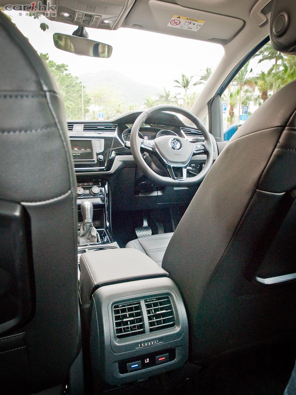 新的錶板設計也與新 Golf 相似,黑膠襯上大片亮黑色飾塊,有儀錶和冷氣出風口電鍍框邊、中控台屏幕、圓鈕形冷氣制等,用料比齋黑膠的舊款豐富得多。位於 625mm 高的坐點 (Golf GTI 為 477mm),Touran 保持那稍高 Wagon 式的坐姿;軚盤角度改得較為正直,減少舊款的駕「巴士 feel」;前排中央地方現加有手枕兼雜物盒。在原產地,Touran一如以往本是 5 人車廂,尾排兩張座椅為 Option 選項,香港當然標準化作為 7 人車出售。在稍大的車體以及長多 113mm 的輪距之下,新 Touran 當然有較闊的乘坐空間,現中排和尾排的腳位分別增多 40 和 53mm,兩排的頭頂空間分別多 6 和 13mm,感覺明顯較舊款鬆動。可獨立前後趟動 200mm 的三張中排座椅,腳下變為平地台,中間乘客可坐得較為舒服,椅背有三個角度調校,新設的 easy entry function 輕易進出功能,拉一拉膊頭位的手抽,整張座位便向前移和升起,方便出入尾排;前座椅背設有供中排用的小桌子。後排的座背可按制推低至與行李箱平齊;新採用的 fold-flat seating system 座椅攤平設計,由尾座至中座至前乘客位,可像「座椅蜈蚣」般續張攤平,背貼背的連接成一平台。新增的特別設備中,稱為「Pure Air Climatronic」的3區冷氣系統,其活性過濾系統能隔走空氣中的真菌和過敏原;尾箱的照明燈現可拆下當電筒用;尾門改為電動升降,兼有踢腳開啟功能。