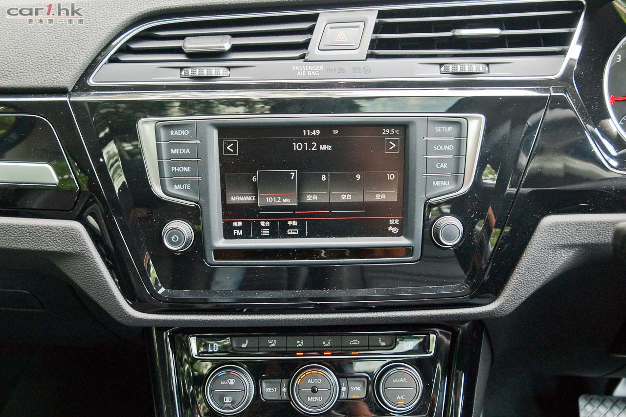 新錶板設計與新 Golf 相似,用料比齋黑膠的舊款豐富得多;位於 625mm 高的坐點,Touran 保持那稍高 Wagon 式的坐姿。