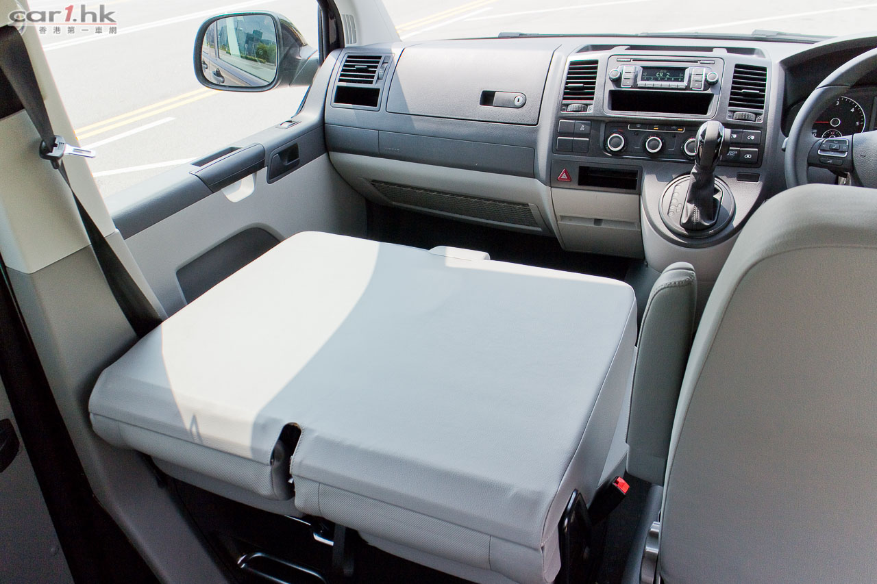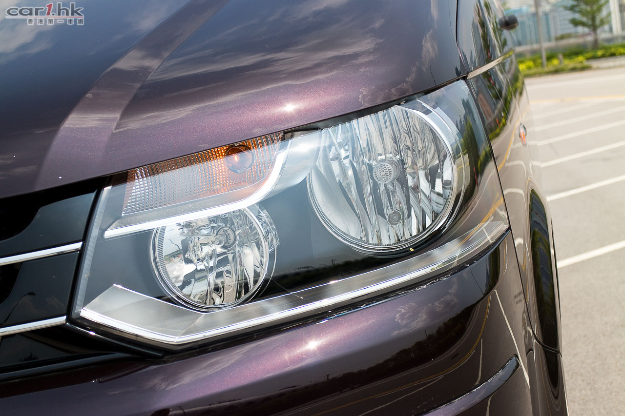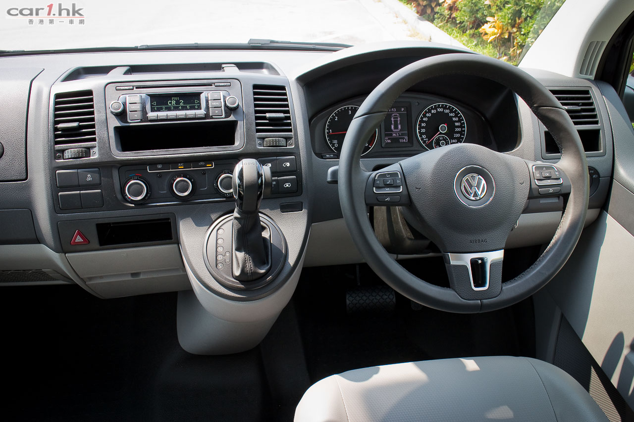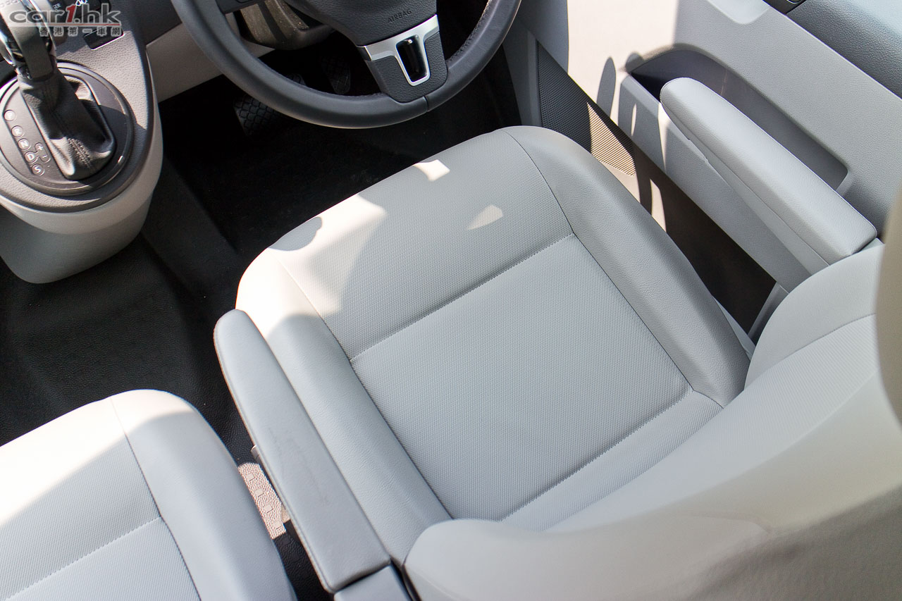 Volkswagen 借出的 Transporter 是 2.0 TDI 頂級版本,單看外表其實跟上個版本很相似,仔細一點看才能找出它的分別。這部 Transporter 頭尾燈都作出了小改款,鬼面罩和泵把都添加電鍍邊,看起來層次感有所提升,予人高檔感覺。原廠前霧燈連轉向照明燈功能、自動感應車燈及水撥連「離家」及「回家」照明 功能、16 吋合金輪圈都是標準配置。車廂前座座椅手枕可以添加,同時備有高度調校,令到長時間開車時手部多一點輔助,減少疲倦出現。駕駛艙的軚盤改用了多功能按鍵軚盤版本,可控制音量、手機免提系統,跟私家車的軚環沒有分別,對於試駕私家車較多的筆者來說,感覺非常親切。