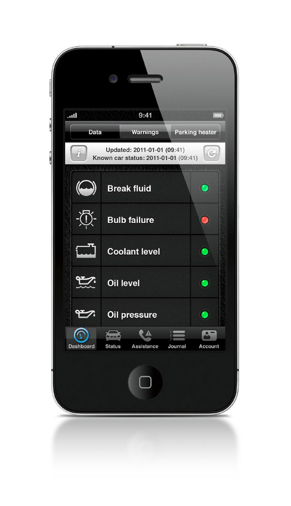 Car check:顯示各支車燈的壽命、制動液水平、冷卻液存量、引擎油水平及油壓。