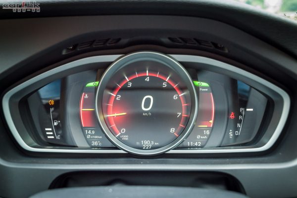 新版 V40 的電油 Turbo 引擎選擇,原廠有 122 匹的「T2」、152 匹的「T3」、245 匹的「T5」和香港賣的 190 匹 2.0 升「T4」,與早期 1.6 升 180 匹的「T4」不同,是 Volvo 新的 Drive-E 系列引擎,設計得更高效能,更低磨擦,更少污染,輸出比舊款「T4」多 10 匹和 60 牛頓米,平均耗油量由 6.1L/100km 降至 5.5L,0-100km/h 由「麻麻地」的 8.5 秒加快至 6.9 秒。車子加速明顯比舊款快,中段 3-5,000 轉尤其谷氣,再上 6,500 轉紅線要等;踩油之間有 Turbo Lag,要稍等渦輪「wheez…」像吊 Clutch 的轉起。引擎聲浪沒甚麼特別,踩至高轉有些微粗「鞋」。早期 V40 採用 6 前速「Powershift」雙自動離合器波箱,新版改用「Geartronic」6 速自動波,不過這沒有大相干,因為舊式「Powershift」的轉波反應與正常自動波分別不大,並不似一般雙離合器波箱般爽快和無縫;新波箱沒有軚盤轉波制,只可從頗長的波棍+/-轉波。行駛感覺偏向舒適的 V40,在密細的凹凸路面上,懸掛依稀有點微硬,其他情況車體都跟路面幅度拋浮,與 Audi A3 Sportback、VW Golf 這類歐陸車系類似。標準設有的 City Safety 安全系統,在 50km/h 下可自動偵察車前障礙物,懂自動剎車,其實車子早在 2012 年推出時已是標準裝備,近一、兩年才開始有較多其他汽車陸續採用,又多一個理由給世人傳頌「Volvo 車很安全」!