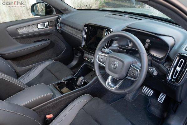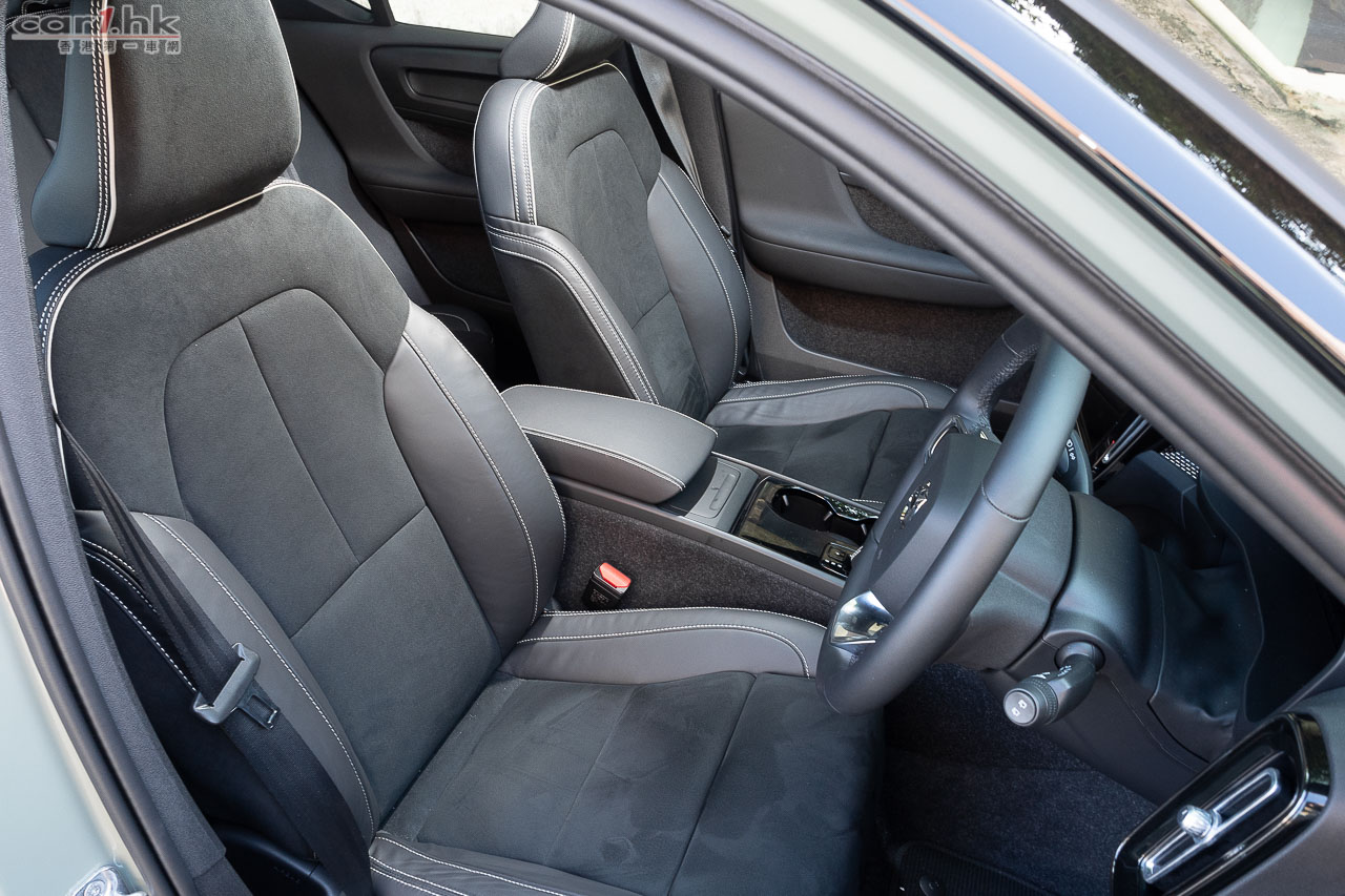 XC40 Recharge 的車廂靈活和實用性與車系的電油版沒有分別:司機位椅底設有抽屜,中橋雜物盒內有小型垃圾箱,前門邊儲物格,前乘客儲物箱內和 B 柱有掛勾,前座椅背有繩網格,中橋有冷氣風口,後排座墊的左右兩端有膠兜,行李箱層板可摺成一半棟起來作隔板,層板之下有載物下格。Recharge 的錶板和中橋裝飾、天化、門邊格地毯則特別全用上碳灰色,像很 Sporty 的模樣,同樣改為碳灰色的座椅,有對比色縫線,中央的部份採用有點像猄皮的「Microtech」纖維物料。屏幕顯示與我們月前剛試過的小改 XC60 一樣,儀錶只有「沒有數字/有地圖」的「Navi」和「有數字/沒有地圖」的「Calm」兩種模式,不再是之前有四種色框的模樣;中台屏幕也是,沒有了之前將所有輔助和安全系統一格格「攤」出來的第二頁,現要續項在屏幕內搜尋;可改變反應的亦沒有甚麼 Comfort 或 Dynamic 模式,只有 Offroad、軚盤輕重,和要不要「One Pedal Drive」單腳踏駕駛,即「收油」拖慢反應;在小改 XC60 已玩過的同個 Google System 屏幕系統,內置 Google Map 導航,可用Google Play 玩 apps,和可「Hey Google」召喚 Google Assistant 來聲控個別操作系統,另 Volvo Cars App 可遙控開鎖/解鎖;空調系統有 Pre-conditioning 功能,可透過手機 app 遙控或預校時間在登車前預先調節車內空氣溫度。