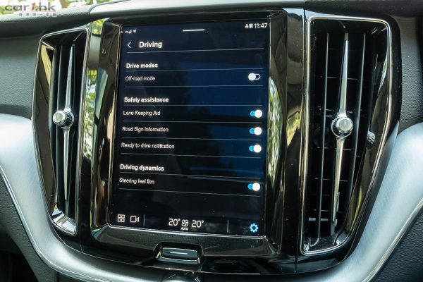 跨錶板的「弓」形鋁飾條、「Sensus」垂直中台屏幕、「Airblades」冷氣風口垂直銀色手柄、通窿的方形波棍頭、好看也好座的座椅、前座內側縫有的瑞典國旗。構成其他國家汽車所沒有的熏圍。車子小改後,卻減省了數項我們一向認為XC60最好玩和好看的地方,這有點令人失望:原本有「Glass」、「Minimalistic」、「Performance」和「Chrome Rings」四種顏色和圖案選擇的儀錶顯示,現藍/黑色調的儀錶只剩下「沒有數字/有地圖」和「有數字/沒有地圖」兩款,代理指將來推出的 Volvo 電車車系儀錶也是這個模樣。之前轉數錶內有「電池仔」讓人得知微混能系統在一格格充電或是著藍光出力輔助,這個現沒有了。Drive Mode 反應系統本有 Eco、Comfort、Dynamic、Offroad 以及 Individual 可自定引擎/波箱快慢、軚盤輕重、brake踏輕重,這個連同中橋上的「電動磨腳皮機」滾筒形按鈕也沒有了,只剩下 Offroad 模式和軚盤輕重兩項可在屏幕內選擇。之前屏幕撥向第二頁可將所以輔助和安全系統一格格「攤」出來方便開關和閱覽,這頁也給取消了,要續項在屏幕內搜尋,改動實在令人費解。