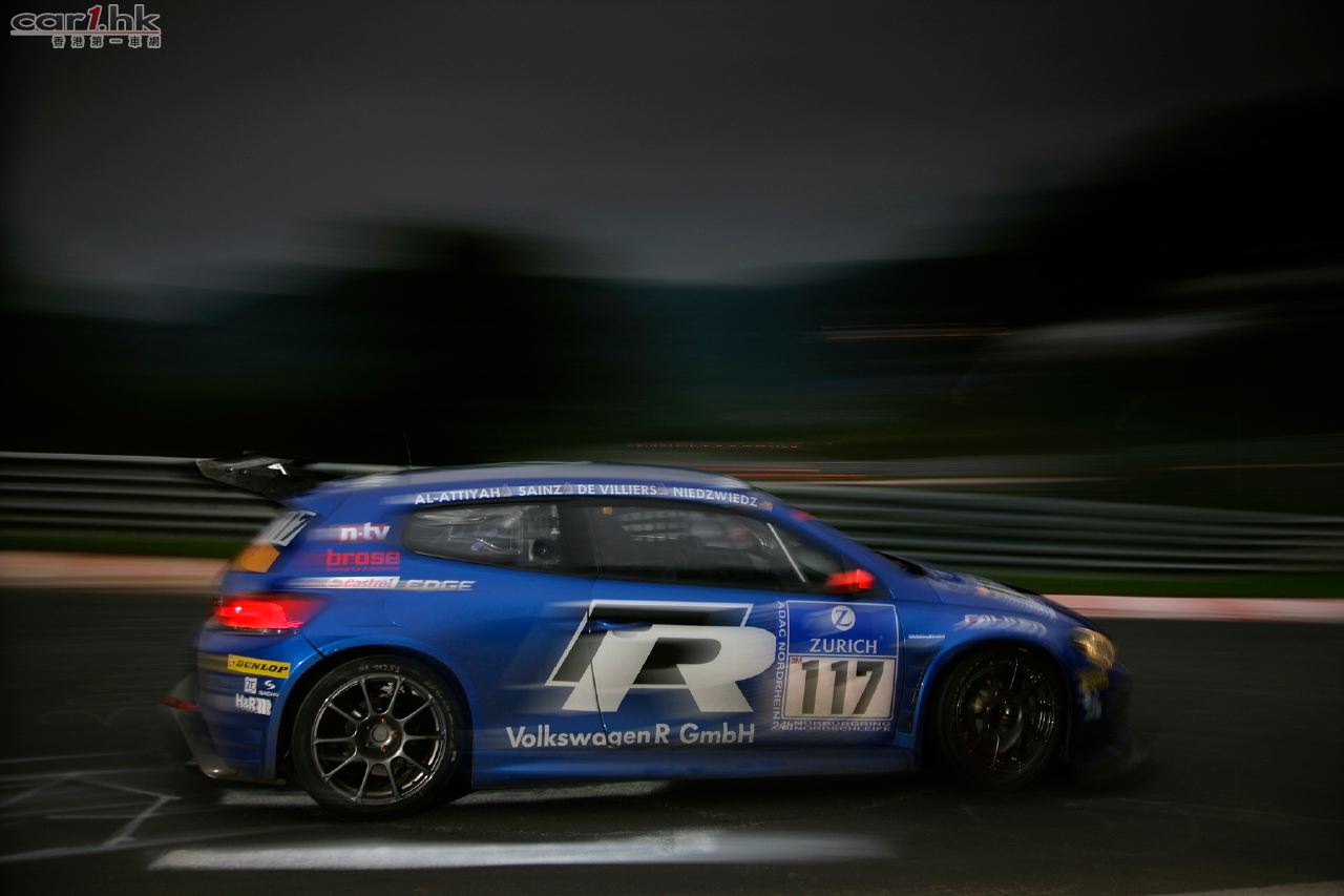 除了早前報道過 Porsche 在紐布靈 24 小時耐力賽奪冠,原來母公司 Volkswagen 亦有參戰!只是組別較低而已。VW 方面派出 3 部 2.5L Turbo、總馬力輸出為 450hp 的 Golf,以及 2 部以天然氣為燃料的 2.0L Turbo 引擎 Sciroccos,參加紐布靈 24。整個比賽過程裡 VW 的 3 部 Golf,說得通俗一點是「黑仔」,因為 3 部分別因為變速箱損壞(起跑後 6 小時)、入 pit 時與多部參賽車發生碰撞,以及差速器損壞(起跑後 18 小時)而被迫退出…… 餘下的 2 部 Sciroccos 只好盡力比賽下去。