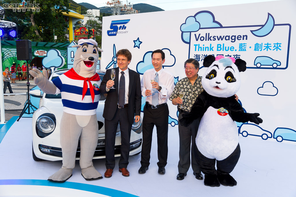 為慶祝在港成立 5 周年,大眾汽車香港有限公 司今天特別舉辦「Volkswagen Think Blue. 藍‧創未來海洋公園之夜」,吸引逾萬名客戶和市民入場參加。現場嘉賓透過互動體驗專區、環保科技 介紹及精彩的水幕表演等,一同分享 Volkswagen「Think Blue. 藍‧創未 來」的環保理念,享受一個難忘歡樂的嘉年華。Volkswagen 與海洋公園多 年來一直致力推動環保,灌輸大眾可持續發展的理念,大家希望通過今次活動,鼓勵每個人盡情投入「Think Blue. 」的世界,在道路上以至日常生活中一同貢獻自己的力量,時刻節能減排,攜手共建藍色低碳未來!