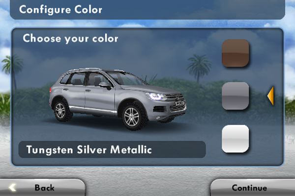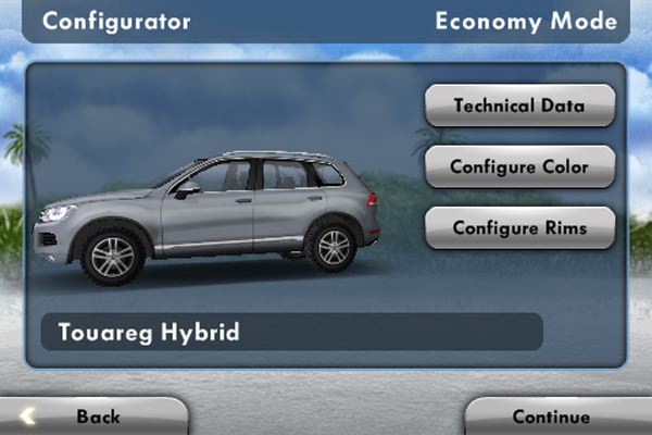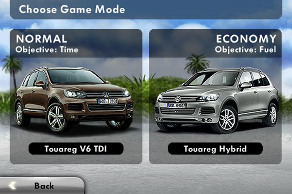 多得 Apple iPhone 等智能手機,以及相關的遊戲開發商,讓愛車之人何時何地都能試車。Volkswagen 大眾汽車早前推出免費的 Touareg 賽車遊戲,當中有模擬真車的造形,還可選擇不同的車(車太)和顏色。遊戲中分為 Normal 一般和 Economy 經濟模式,後者不用多說,也知道是以慳油為目標。