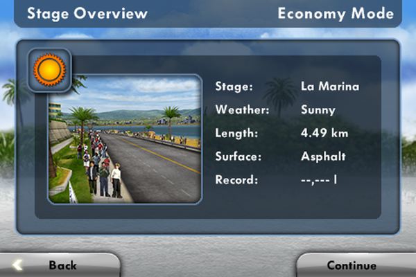 此遊戲雖然免費,但已有多個不同場地選擇,每次都有不同的情況,例如下雪、下雨或泥地等,滿足各位的車癮。玩家主要靠擺動 Apple iPhone 控制左右方向,以及按右下方控制速度。