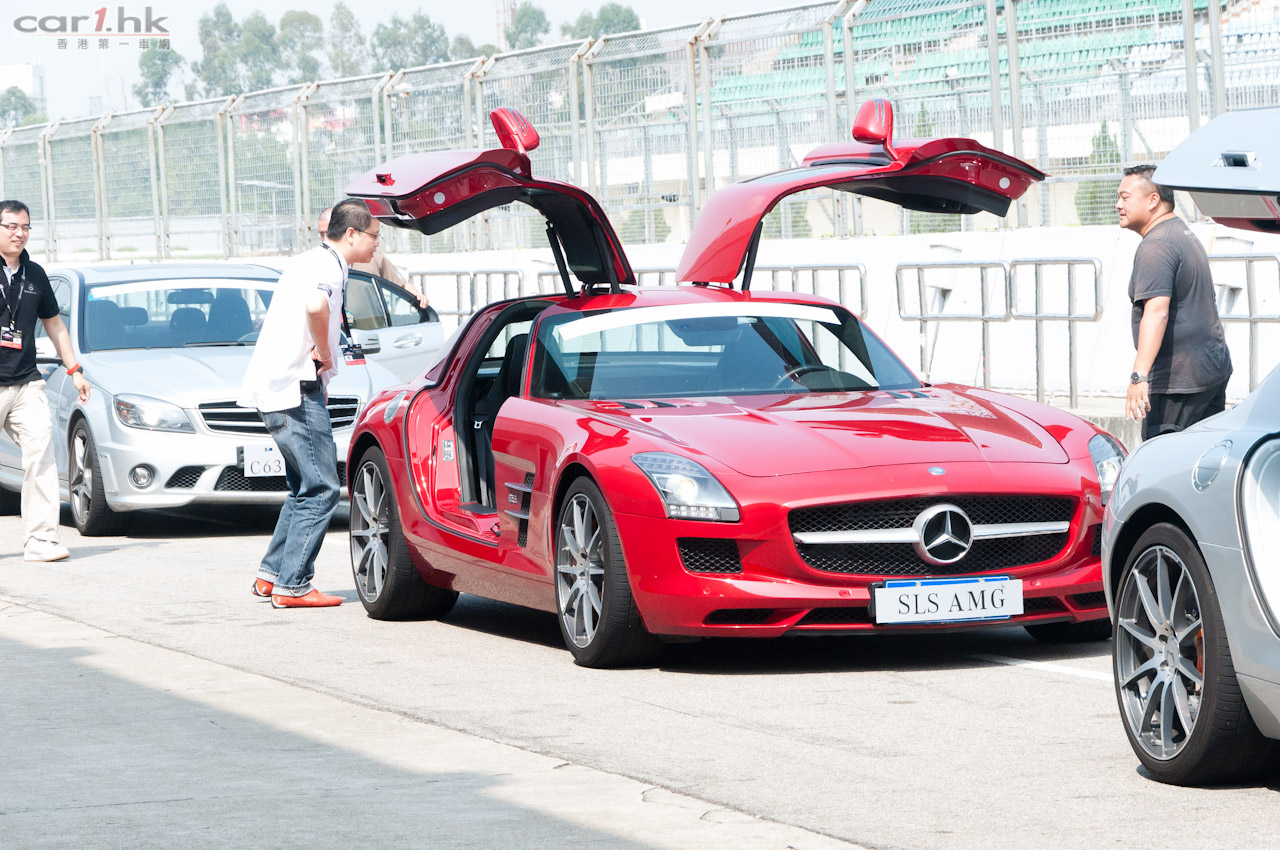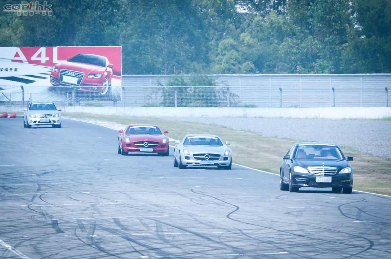第三個試駕環節,當然是最期待的各款 AMG 車型,如 SLS AMG、C63 AMG,讓傳媒親身體驗高達 180km/h 時速以上在賽道上奔馳的快感,看看幾款車子在極限下的操控是如何,坦白說,就算是在香港試駕超跑,時速亦沒有可能高達 120km/h 以上。而試駕當中最令筆者喜愛的當然是 SLS AMG,匯聚各頂尖技術打造,時尚的流線型車身,搭載 6.3 升 V8 自然吸氣引擎,在 6,800 轉時可爆發高達 571 匹驚人馬力,在 4,750 轉時可提供 650Nm 最大扭力,0~100km/h 加速需要 3.8 秒就能完成。
