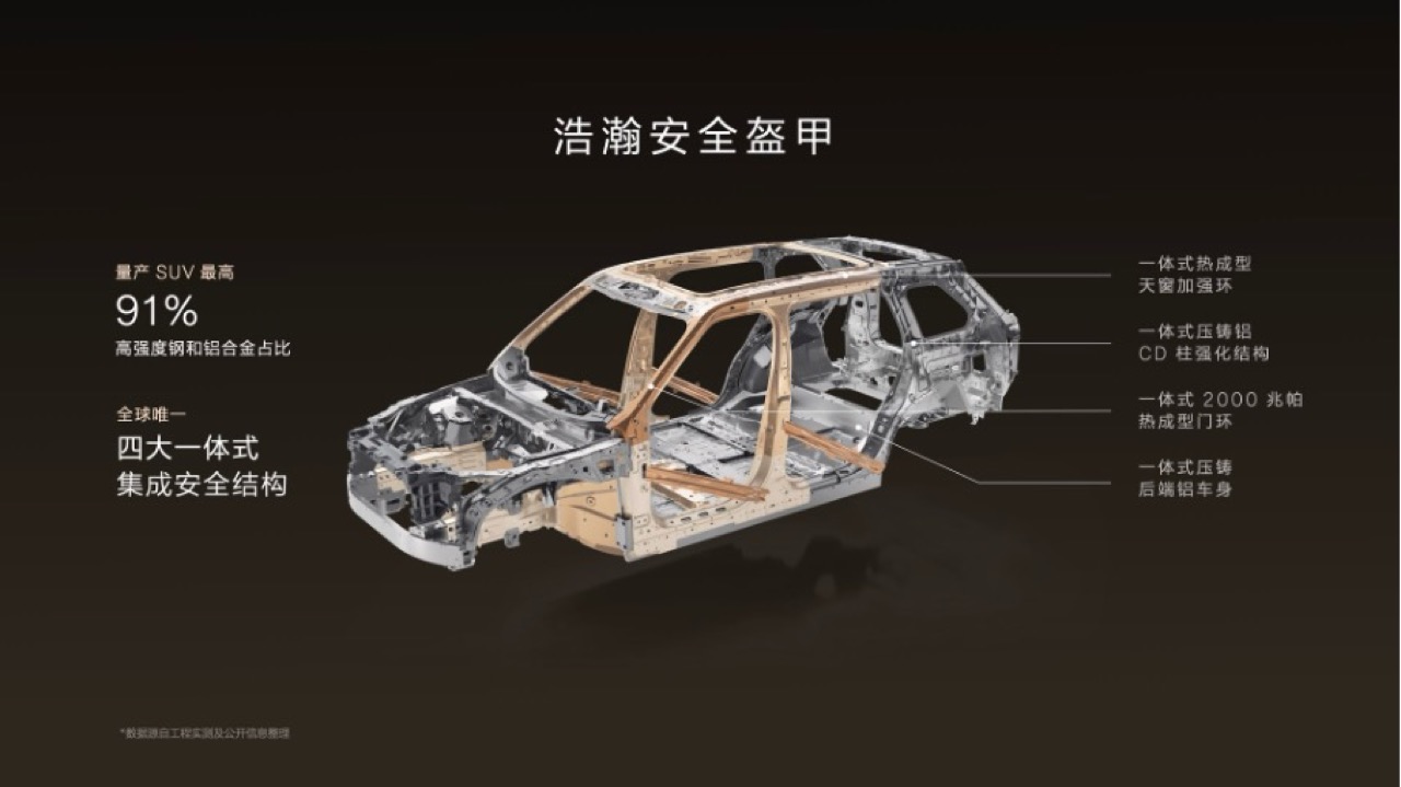 被動安全方面,白車身高強鋼+鋁合金佔比達 91%,「四大一體式集成安全結構」把車身扭轉剛度推到 41,600 N·m/deg,並通過行業首個「單車四向連環極限碰撞」測試。主動安全則有 G-AES 通用障礙物自動緊急轉向(130km/h 連續避讓)、側碰主動抬升(提前 0.7 秒抬升底盤),以及全球首個高速橫風 5A 認證,可於 11 級強風下自動穩車身。