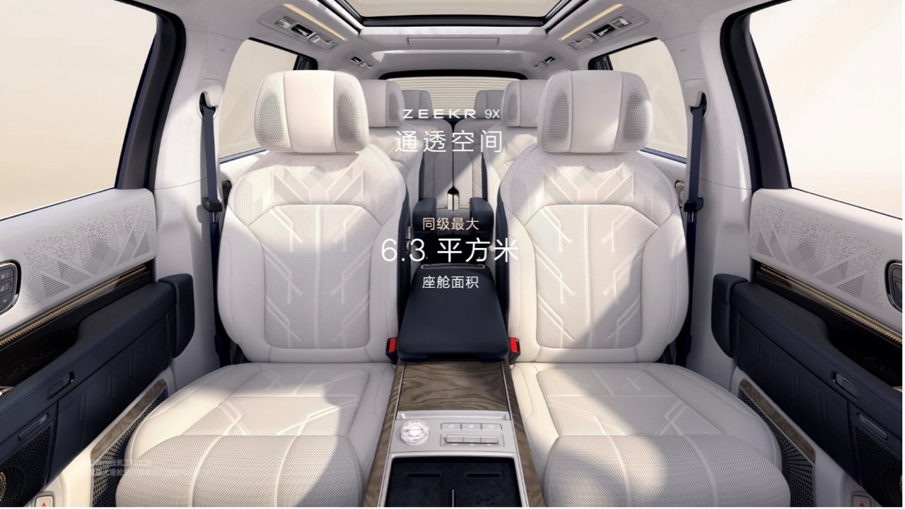 為了把交互推上一級,9X 首發 Zeekr AI OS 7,採雙 8295 座艙晶片與主動式 AI 桌面,配合可在二、三排間滑移 88cm 的 17 吋 3K OLED「飛翼屏」,全車乘員都能找到最舒適的觀看角度。
