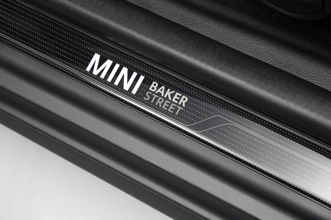 Mini Baker Street 分為 Mini One、Mini Cooper、Mini One D 及 Mini Cooper D 幾種車型,可選擇胡椒灰和午夜黑兩個顏色搭配,基礎車型 Cooper 和 Cooper D 的車頂會是黑色塗裝。全車身內外都有 Baker Street 的特別字樣,只屬於倫敦奧運氣息的獨特風格。動力系統可選擇 4 種引擎,可輸出最大馬力 90 匹至 122 匹,標準配備為 6 速手動波箱,客人亦可選擇 6 速自動波箱。Mini Baker Street 將會採用限時發售的方式,銷售市場不限,即香港的車迷亦有機會可以買到,但確實的推出日期仍然未公布。