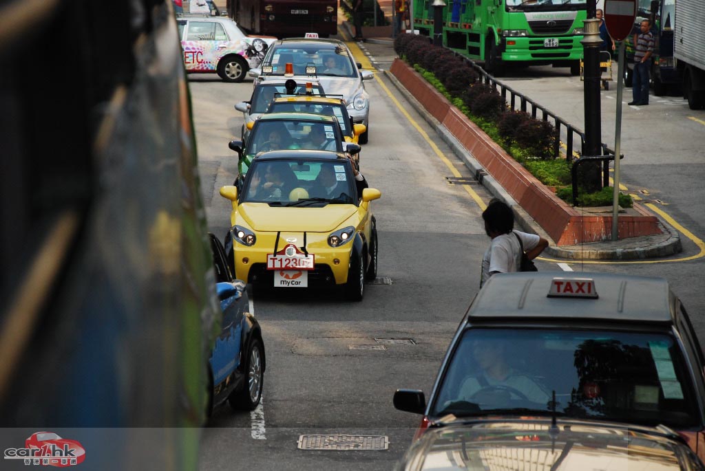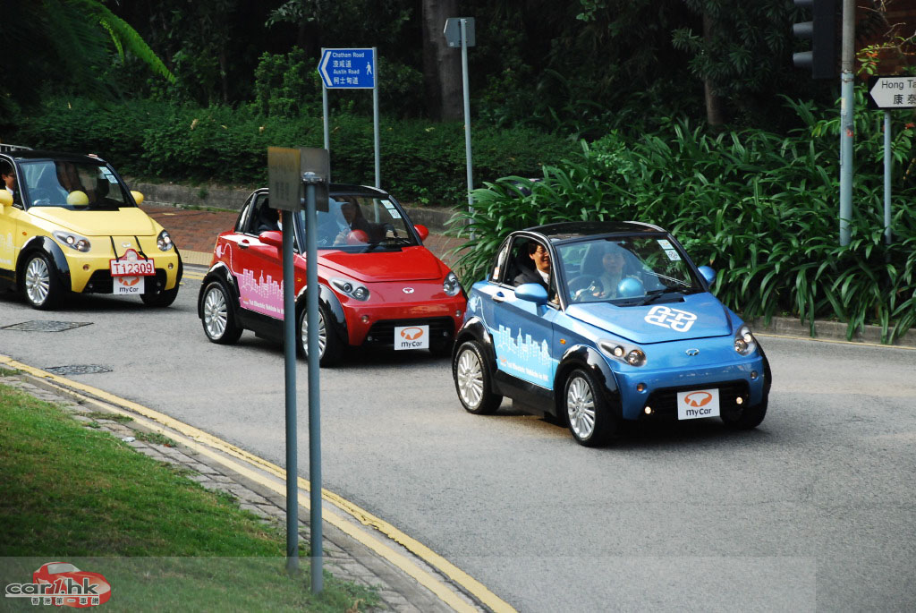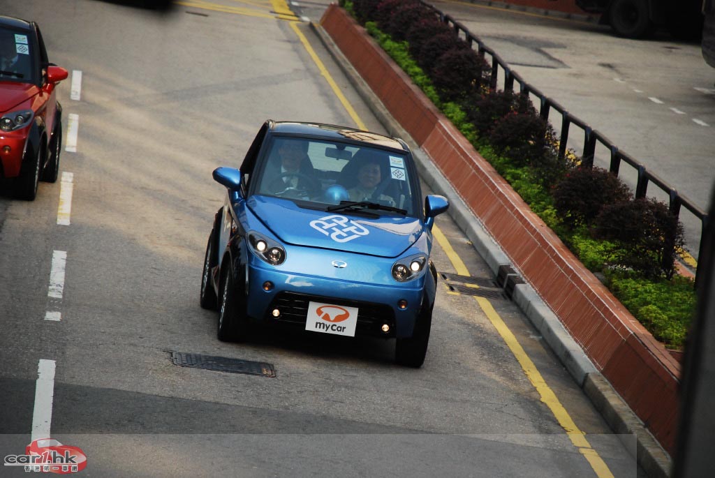 「尖東巡遊」由多架 mycar 列陣,沿途由警方開路。當 mycar 經過一些較多行人的地方時,沿途行人都不禁拿出相機拍攝,可見 mycar 在街上行走的話,收視率也不錯!而巡遊中的 mycar 行駛時車子亦很順暢,與一般汽油汽車沒有分別,作為城市車真的很適合,寧靜、無廢氣絕對是香港需要的東西!如果有一天街上所有汽車也轉為電動車,街上的噪音相信會小很多很多吧。